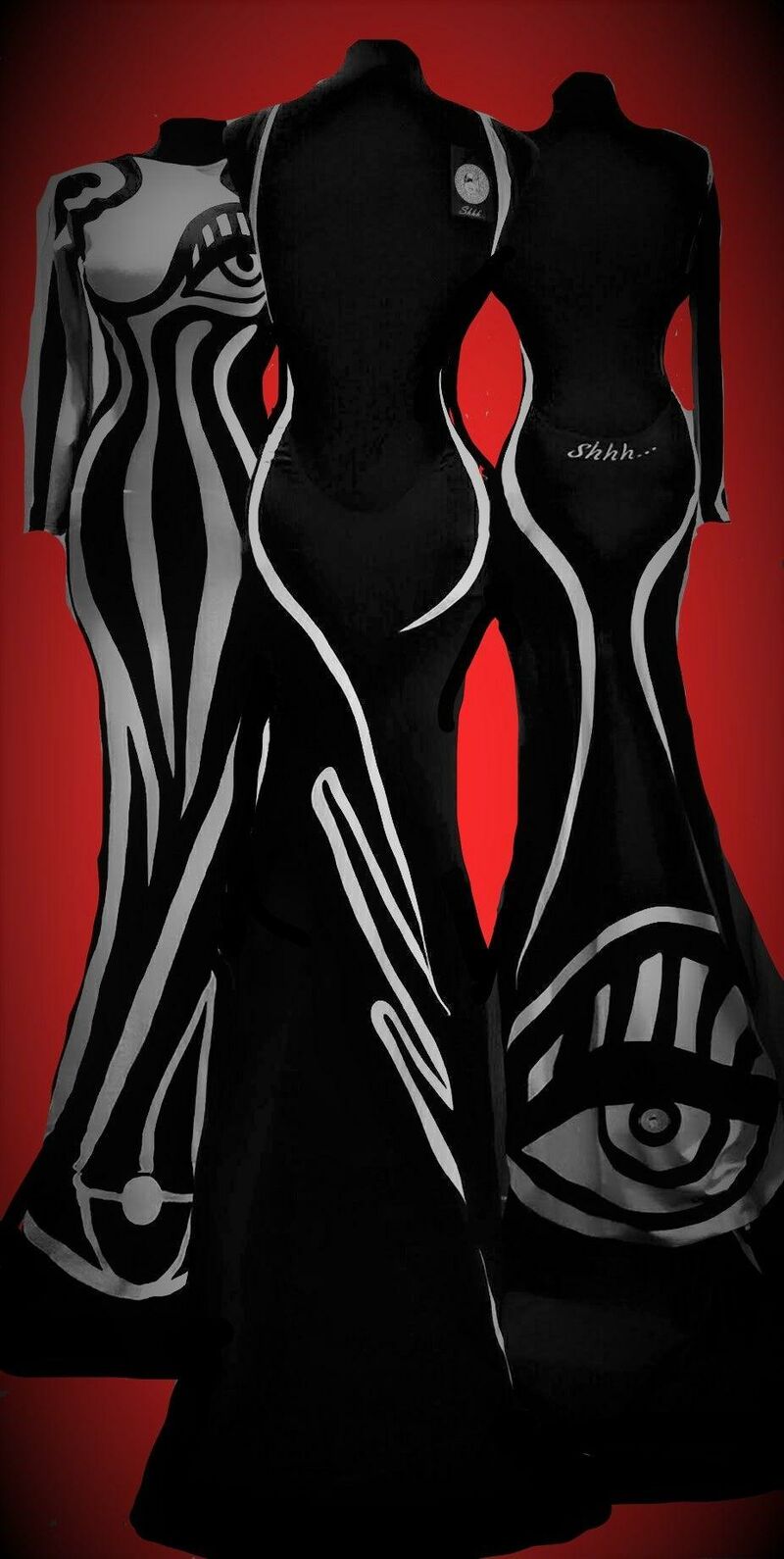 These three evening dresses depict the "Shhh..."brand statement. Creative artistic designs that have a correlating essence, they exude simplicity, sophistication with purpose behind each design. There is a distinctive boldness yet subtleness I try to create with my creations. I think when we take a simplistic look and approach to our creative process then incorporate a wow!! factor, or element of surprise, it delivers a unique combination.