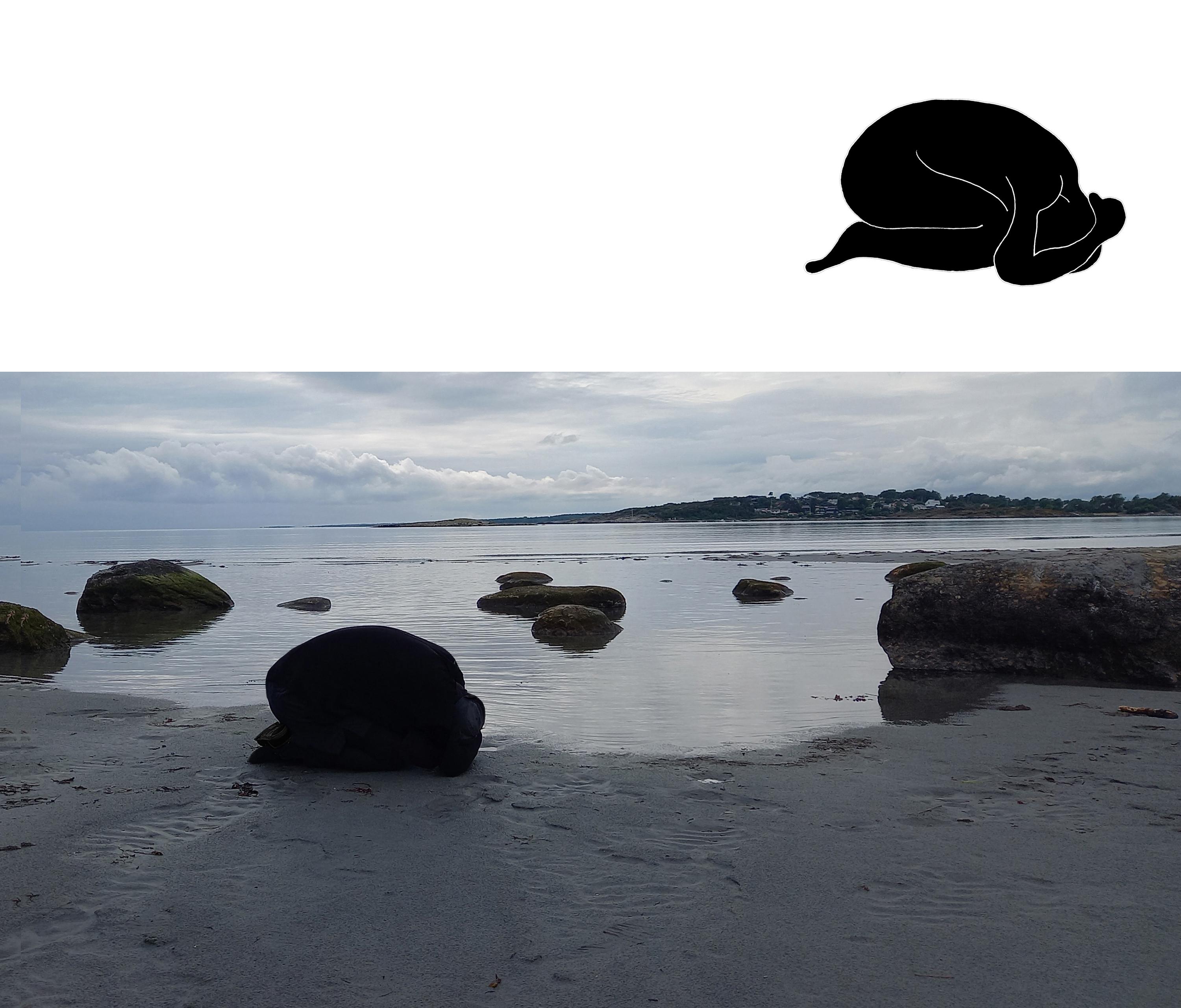I lie still, my body next to the sea, in the place where the sun landed and the ground undulated. On the sand shaped by the eternal swells of the Kattegat. Right next to the world that is the sea, the place where life was born – I still felt it. Life, which changes with time, is shaped by its surroundings, our relationships in time and with each other. My body meets the waves of Kattegat, makes them take new directions, form new formations, meet new spots. The landscape that is me is filled with places where the sun can land and where the waves can make their way, where we are shaped by each other.