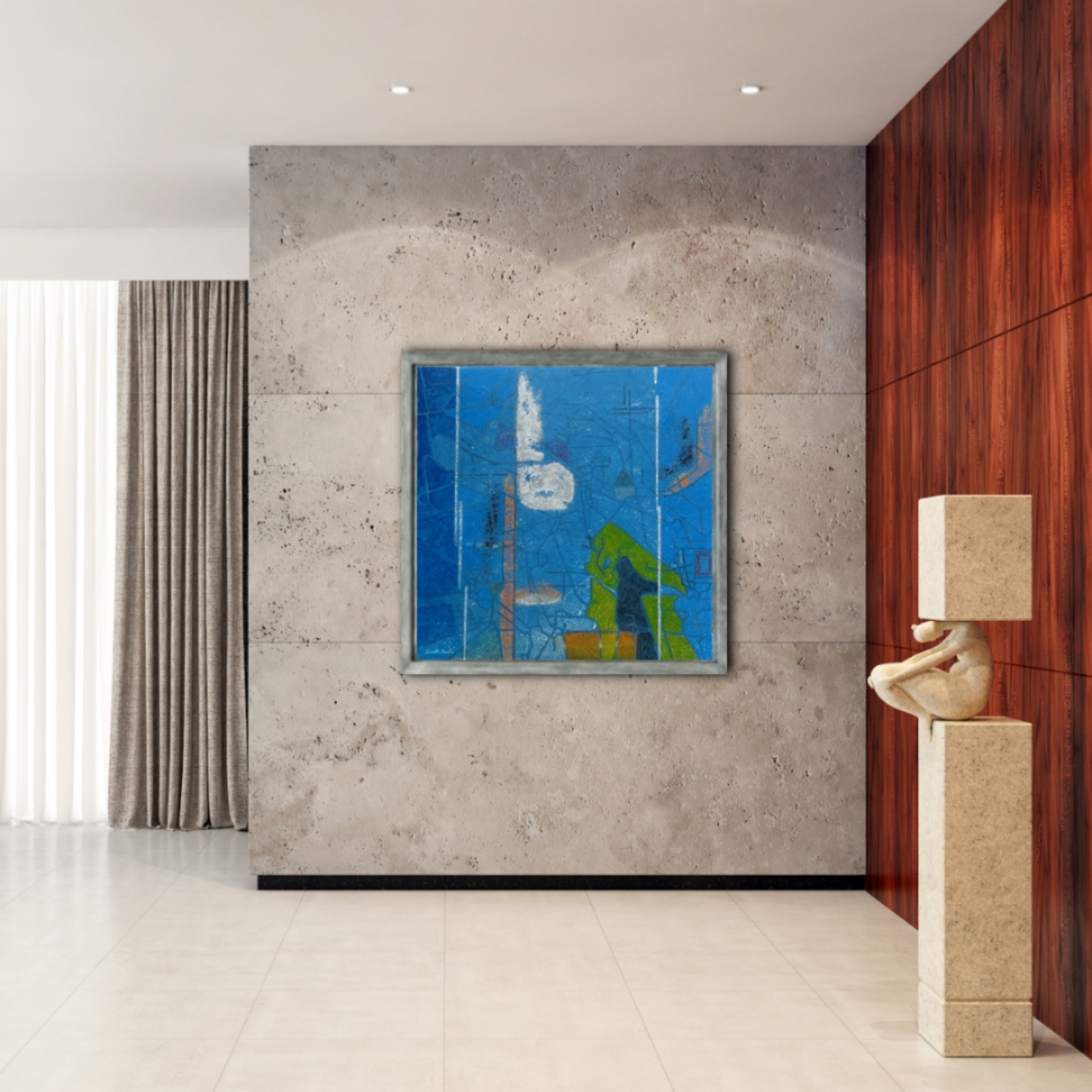 L’opera nasce da un processo spontaneo, senza un progetto iniziale. Le forme emergono lentamente fino a rivelare una presenza sospesa, collocata in uno spazio di passaggio. Le linee verticali suggeriscono un limite, mentre la materia chiara al centro diventa un varco simbolico. Il lavoro indaga quel momento interiore in cui si è fermi sulla soglia di un cambiamento