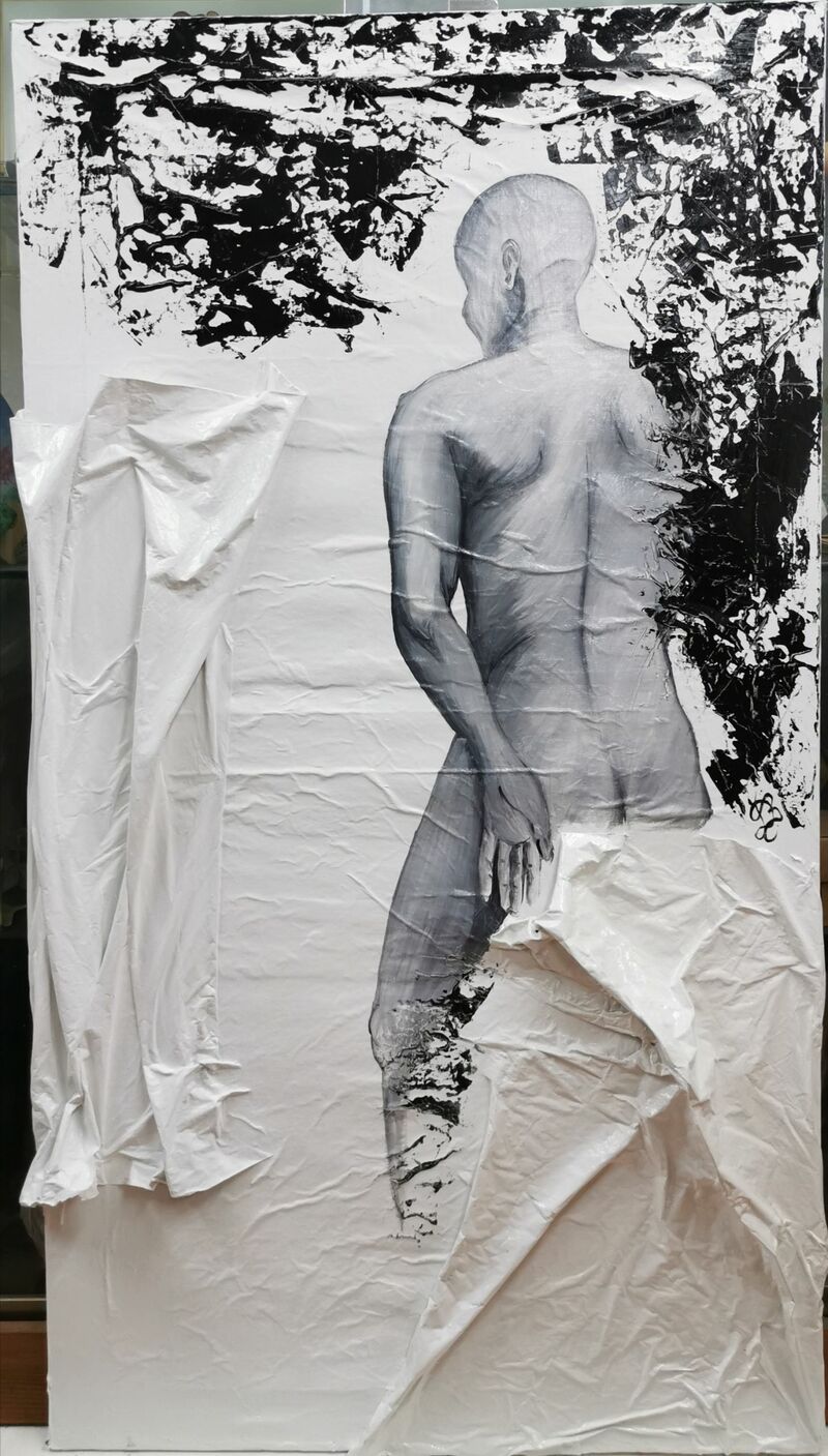In un angolo del mio laboratorio giacciono accatastate, un numero non ben definito di pseudo tele, costruite amatorialmente con tavole e tessuti, per lavori sperimentali, molti anni or sono. Penso di smontarle per riutilizzare il telaio perché mi è sempre piaciuto dare vita a materiale di scarto... Ma più le guardo e più prende forma nella mia testa un'immagine... Mi guardo intorno e vecchi giornali cercano chiaramente di attirare l'attenzione verso di sé. Okay, la forma è ora più chiara nella mia mente e vuole prendere vita!