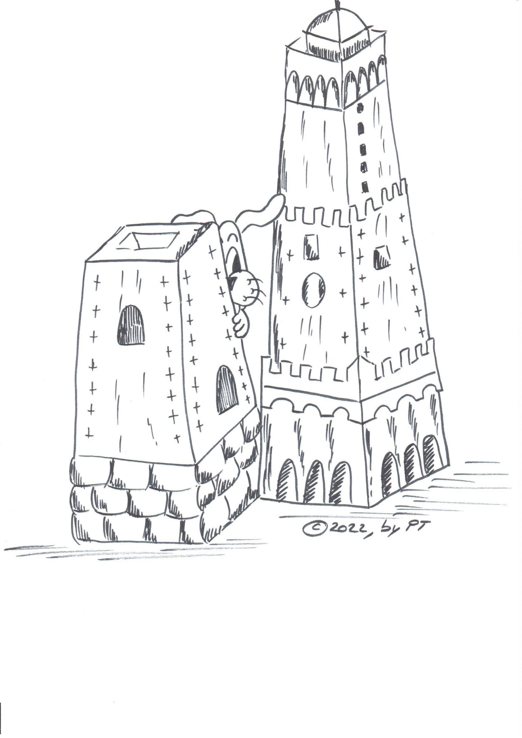 disegno in bianco e nero su foglio carta bianca formato A4le due torri