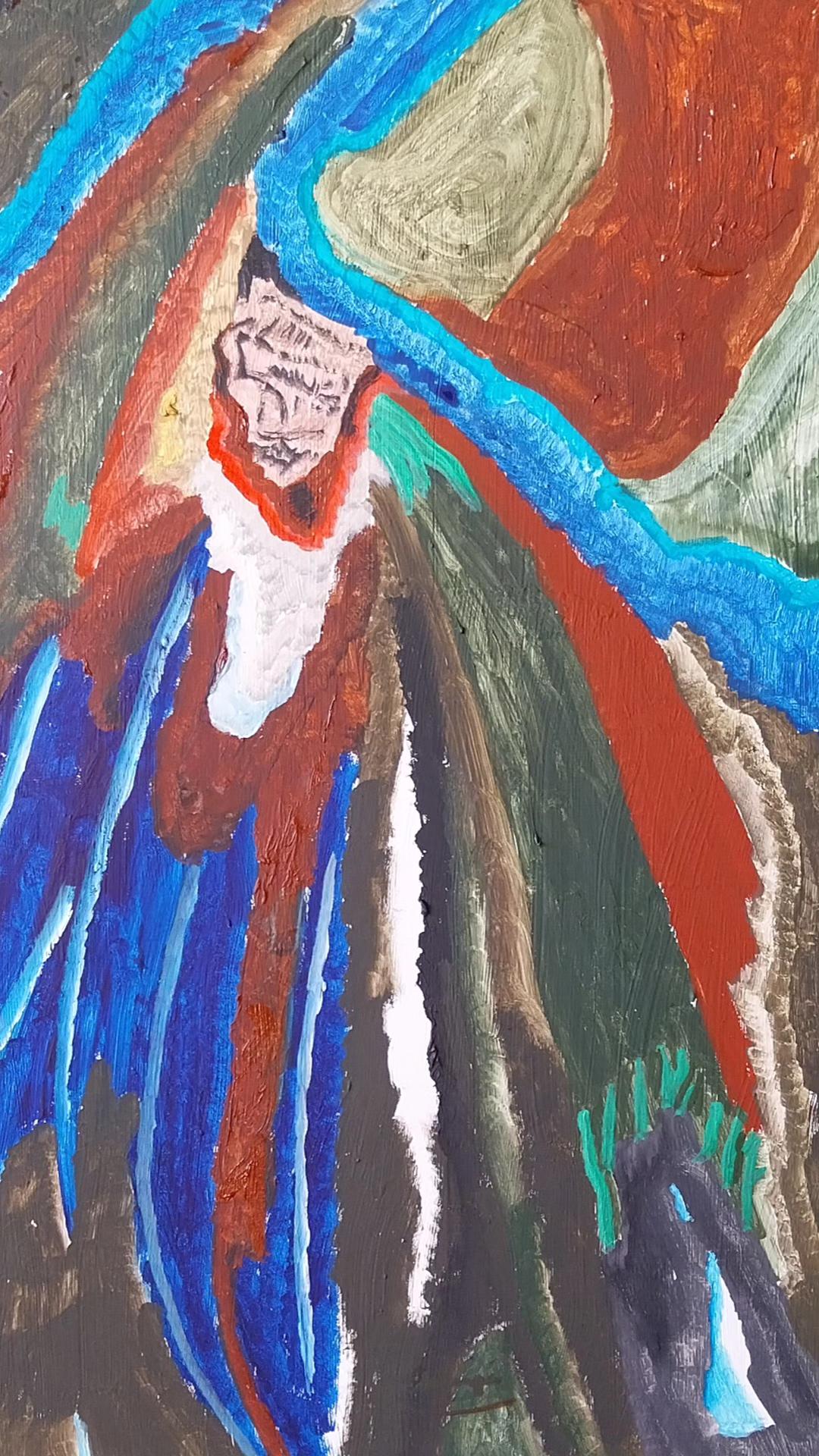 Usando colores oscuros y claros, intento rememorar la técnica del "chiaroscuro" de Caravaggio, uno de los grandes pintores Italianos de siempre. Busco el volumen incorporando líneas y franjas en varias direcciones, dando movimiento y expresividad.