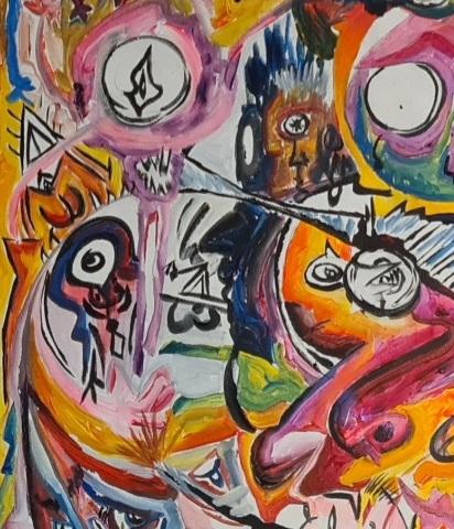 the artist's mind in its maximum totality of chaos, the expression of what he felt demonstrated in the brushstroke and in the 1000 faces present on the canvas.