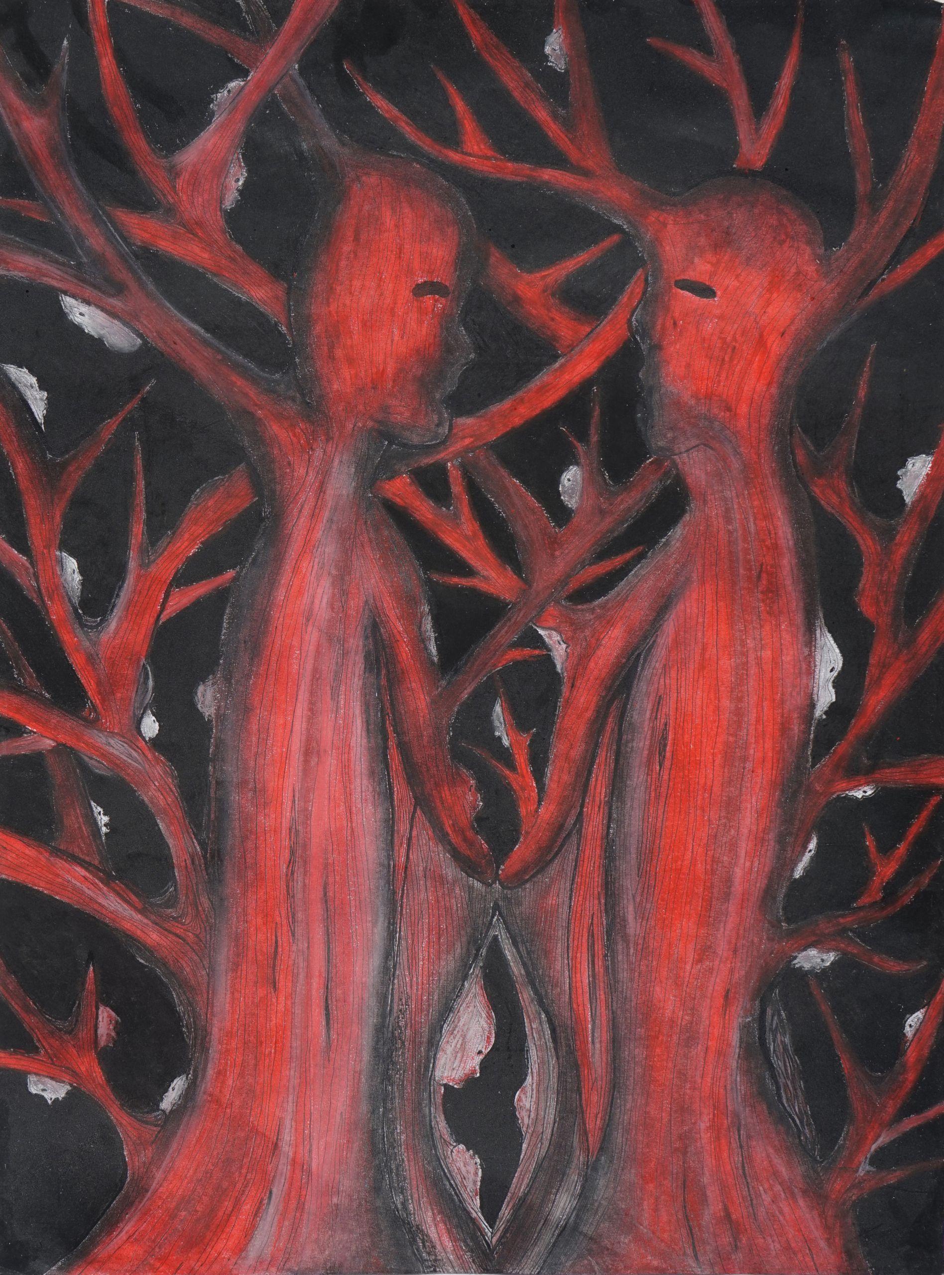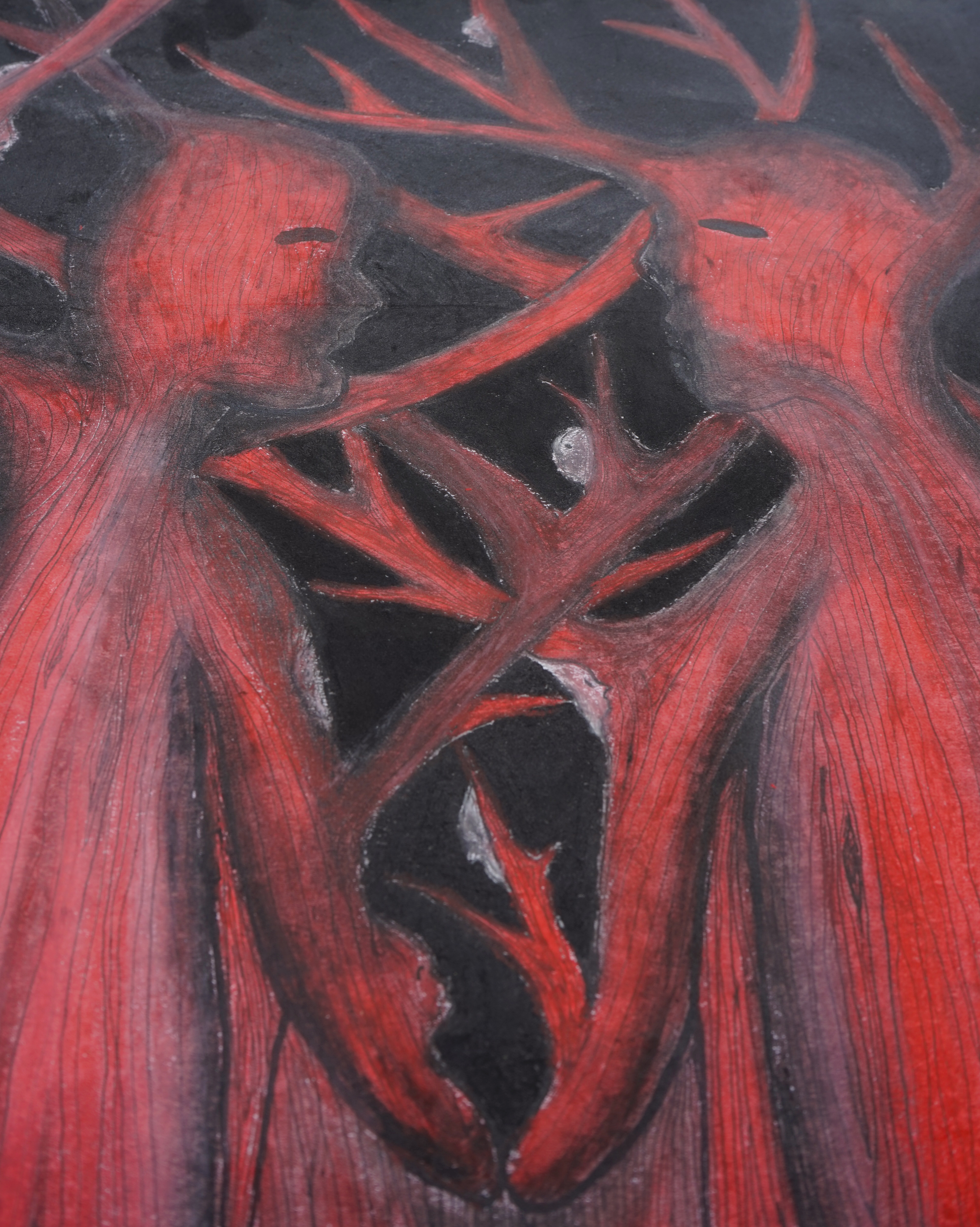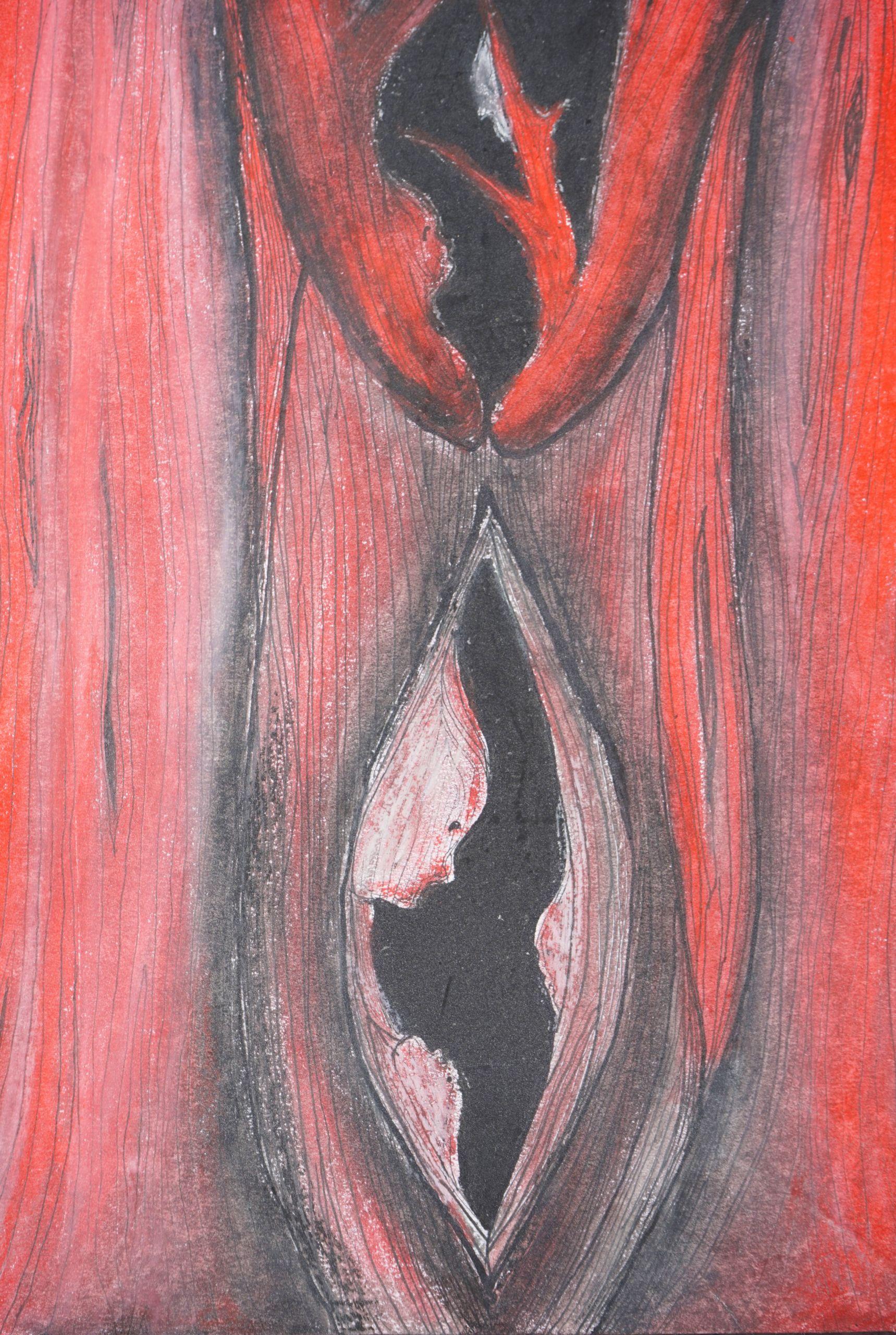 oil pastel painting with oil pen, calligraphic pen and dry pastel
