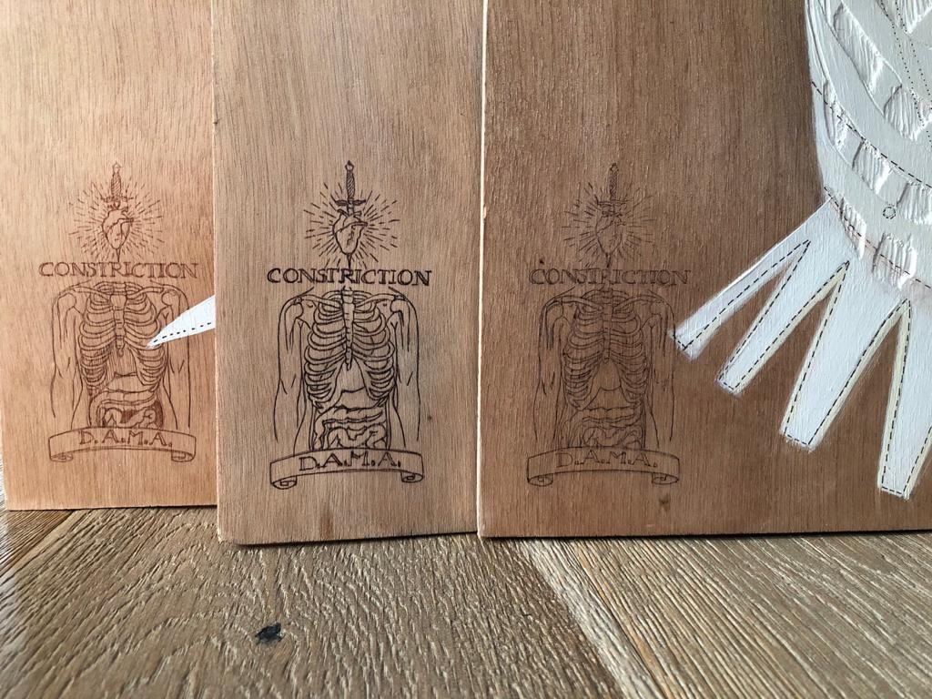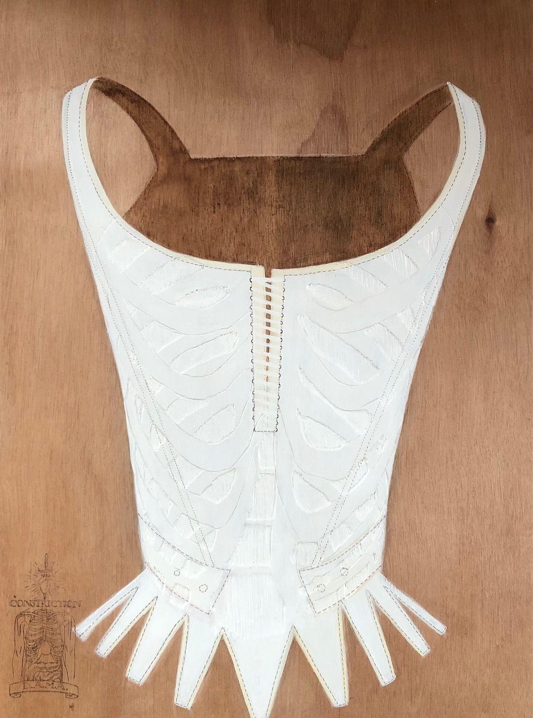 Il corsetto è anche il segno tangibile di una costrizione violenta, capace di modificare la struttura anatomica del corpo, fino al punto di causare lo schiacciamento degli organi interni. Questa COSTRIZIONE genera un disequilibrio che attacca tutti gli aspetti della vita della donna: la sua postura, il suo modo di nutrirsi, l'impedimento a un libero movimento, il respiro...