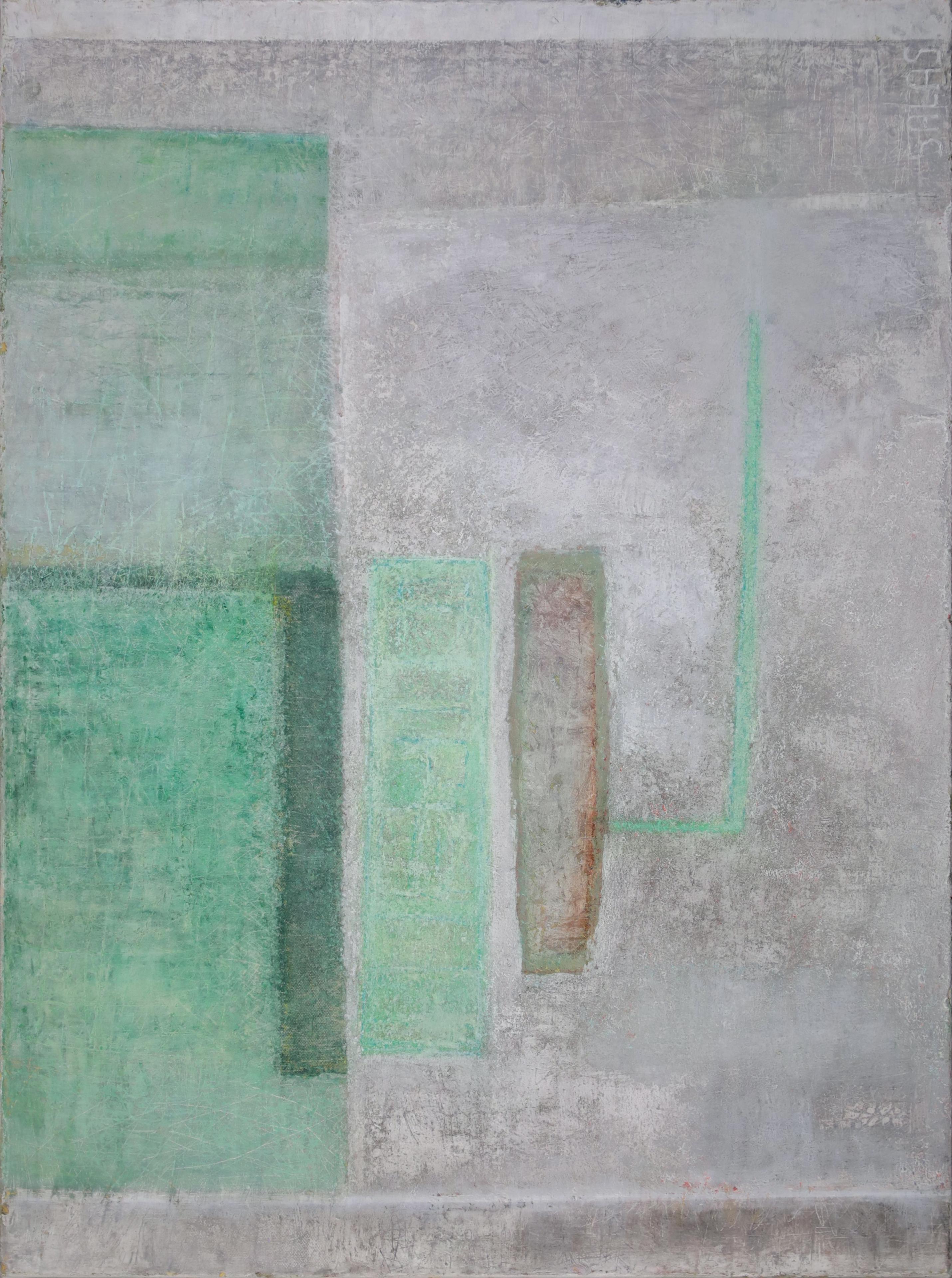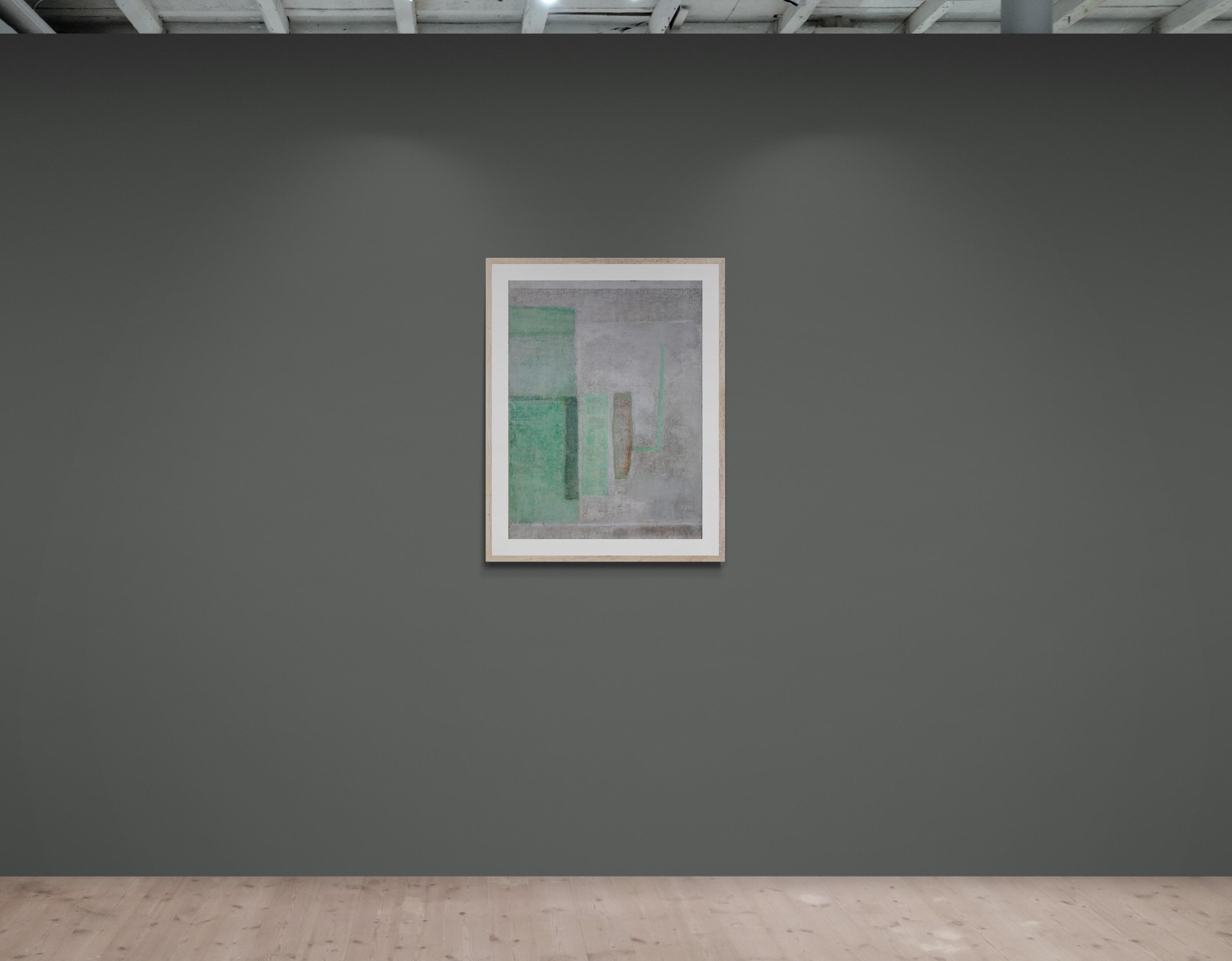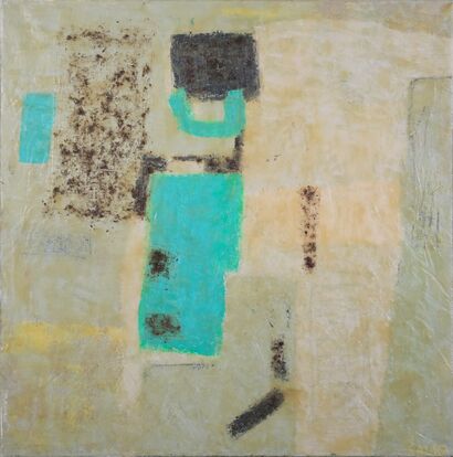 In this composition, the different shades of green emerge with strength and delicacy, creating a sensation of fluid and serene movement. The green, in its various shades, interrelates with a disturbing subtlety. The aqua green, which slides lightly, intertwines with the darker green, which seems to root the composition, providing depth and a silent contrast. In this softly nuanced transition, the greens embrace and blur, flowing into each other with great harmony.