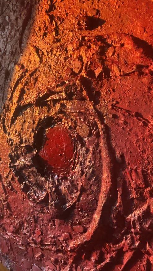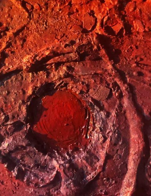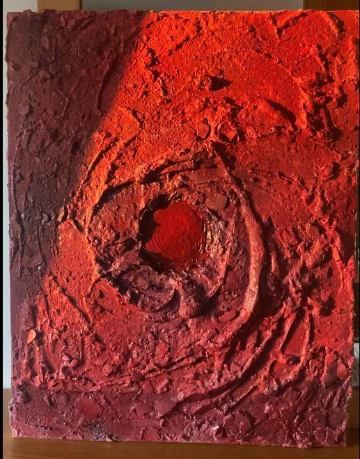 It represents the blue hole in the sea, but instead of being blue it is red like love. In this way the inner depths are expressed. Where the water is deepest there is a father's love... as deep as the blue hole in the ocean.