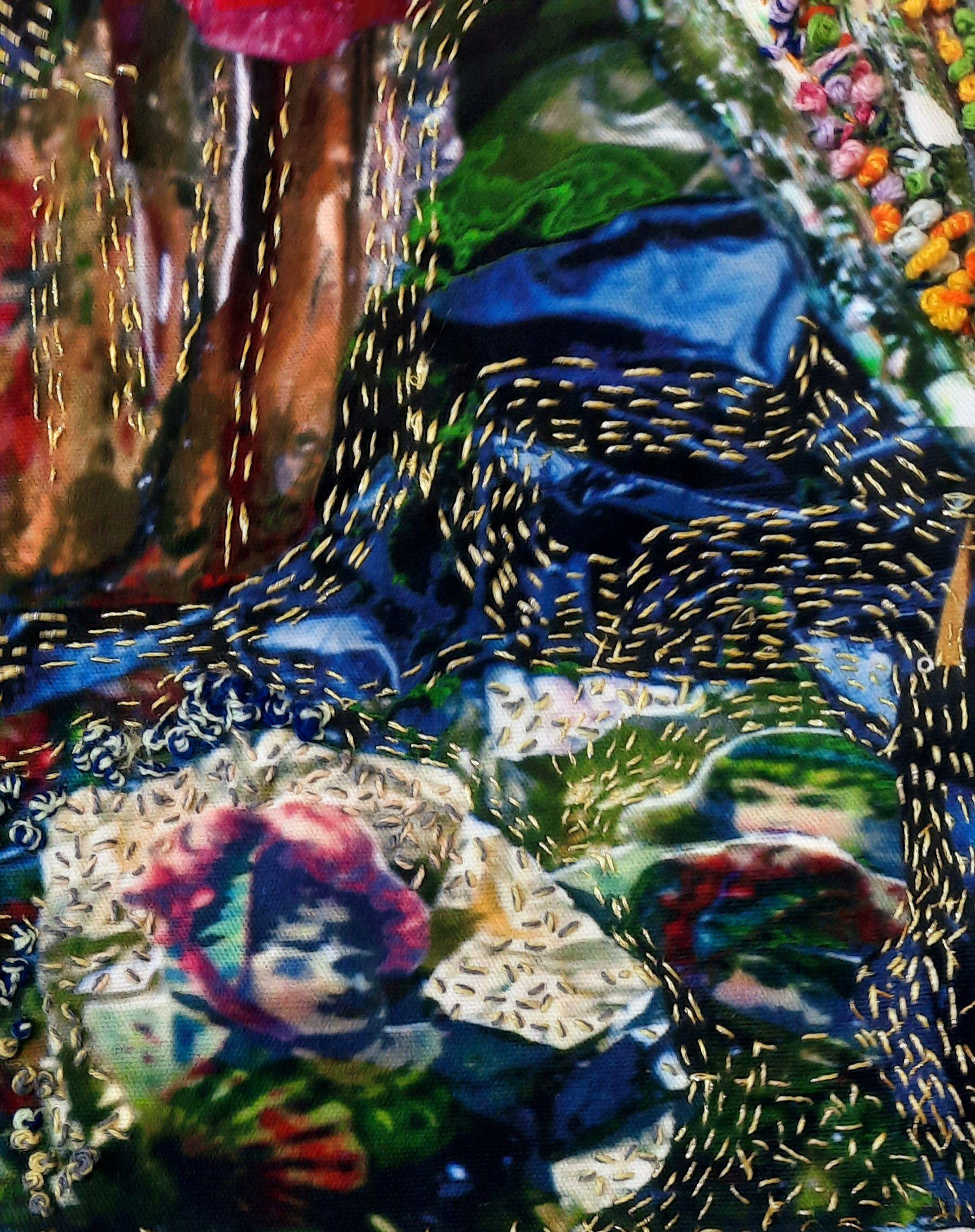 I use 'ready made' which calls Prizers. The Prizes were printed images of innocent children characters from children stories which were collected as a kind of a game. I use this ready made in my works in many kinds of techniques like sculpturing, assemblage , printing and embroidering. in this series i am using printing and embroidering.
