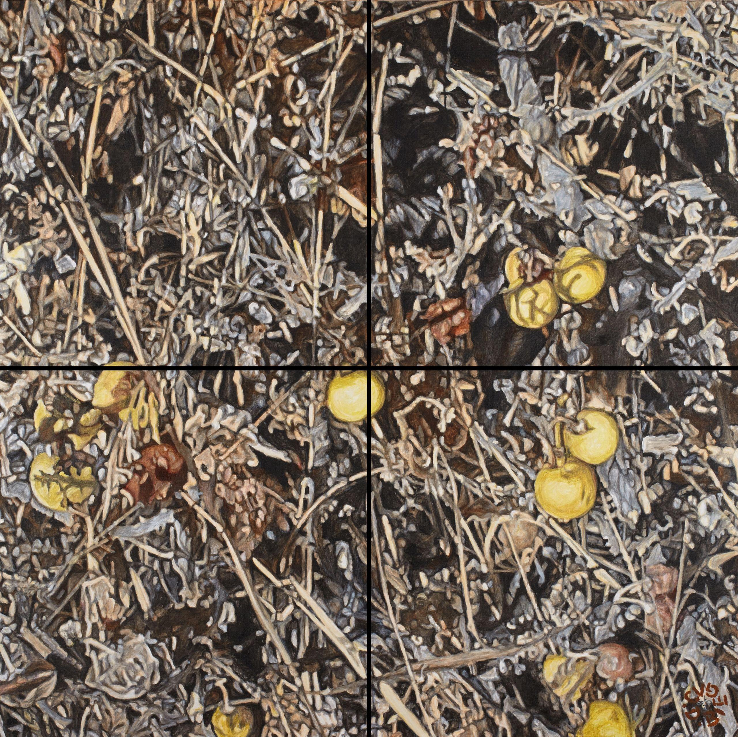 consisting of four individual paintings each with dimensions of 60 x 60 cm.