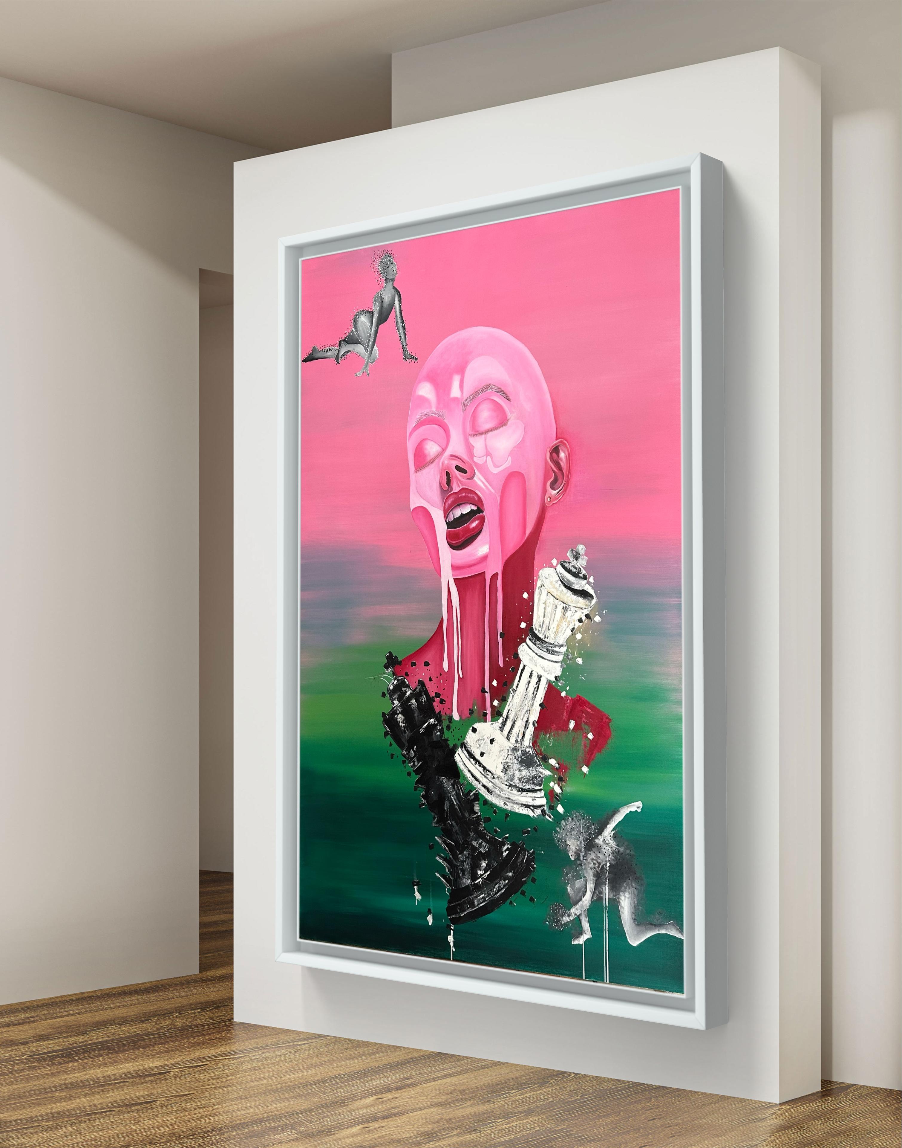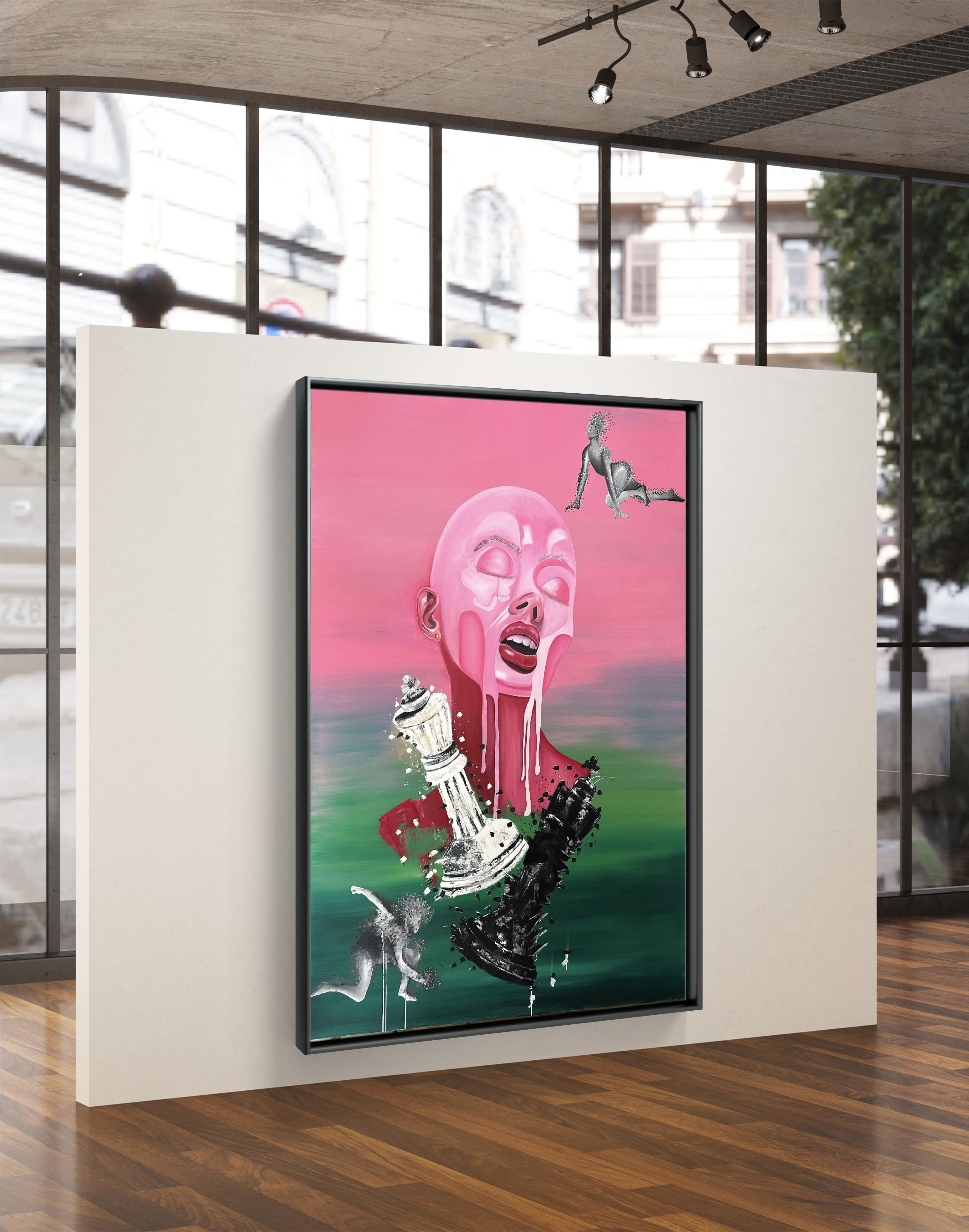 The artwork "Fighting over subconscious mind" is part of a series titled "Mind,". This collection consists of two main sections: Surrealism and Abstract expressionism, focusing on the human mind, the story of creation, and the conflicts between the conscious and unconscious mind. "Fighting over subconscious mind" is specifically a surreal expressionism work.