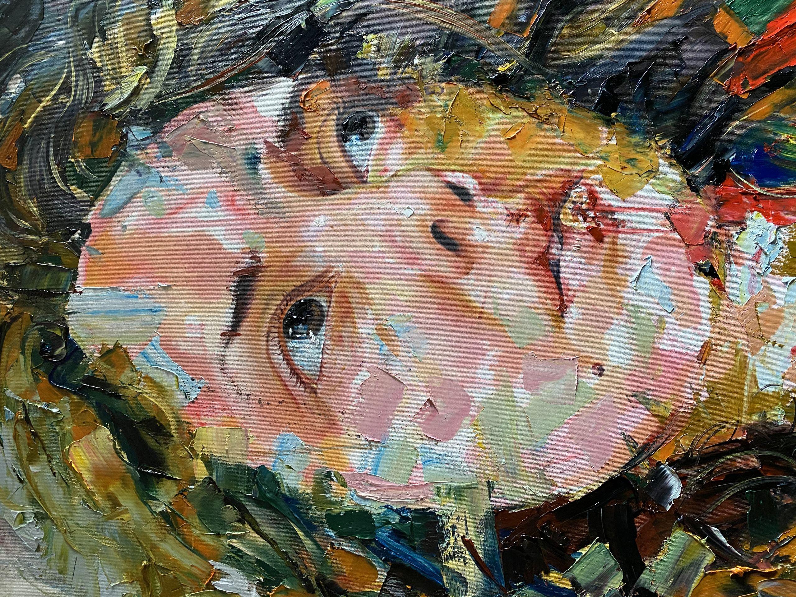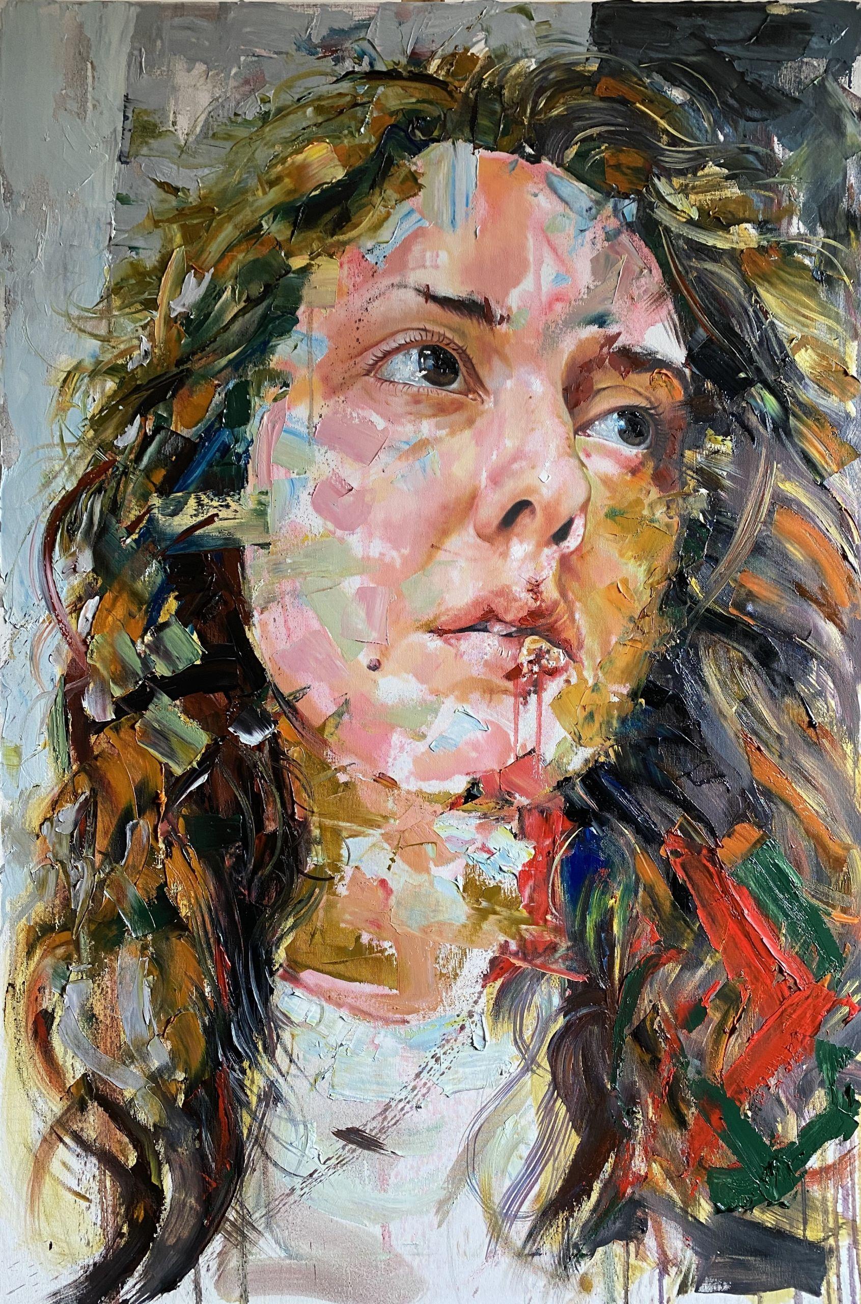 The figure is trapped in a classic pose, reminiscent of the classic 16th century figuration. It seems to suffer from the weight of the pictorial fragmentation of the immediately upper layer.