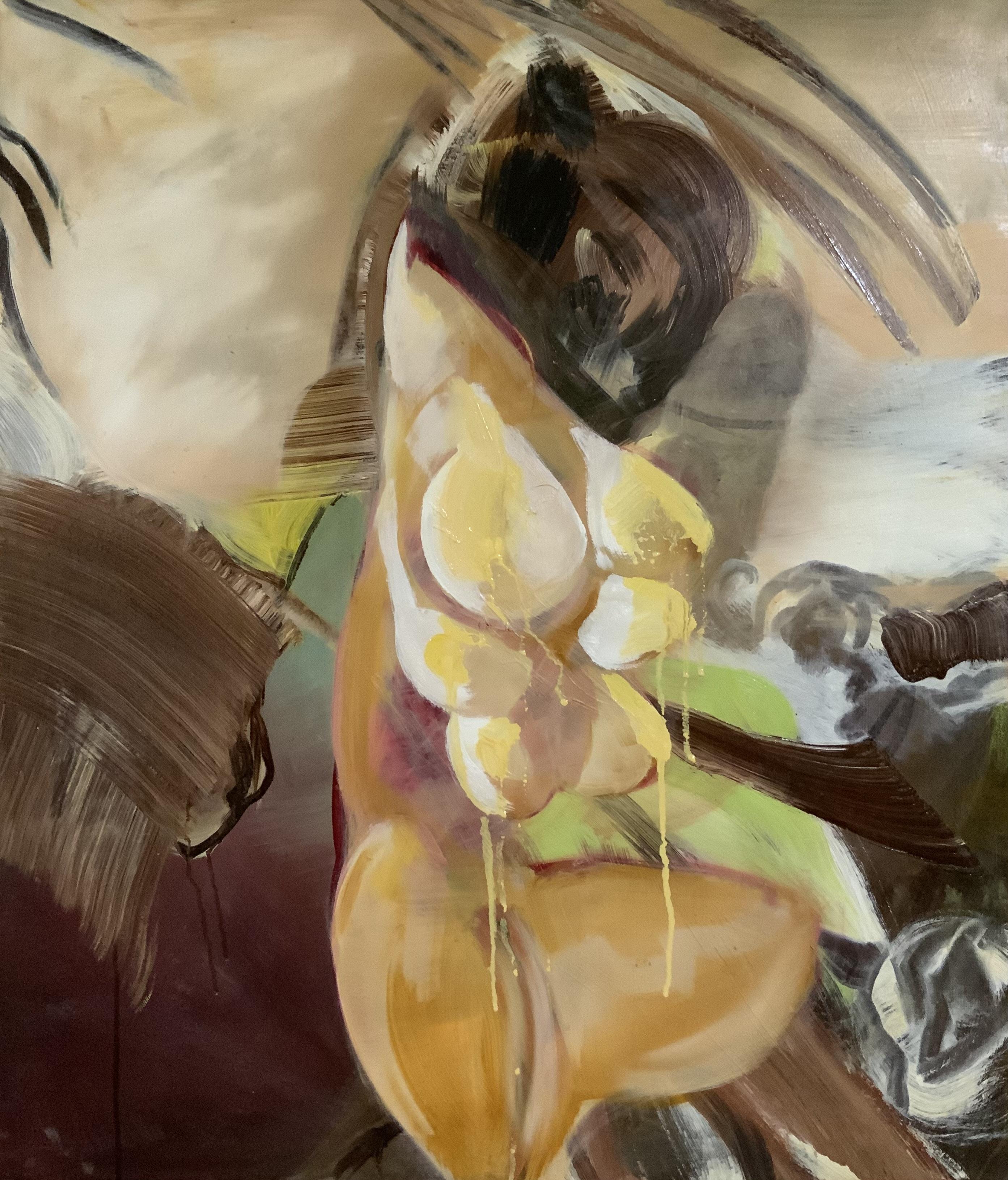 In my two abstract works „Dame Vulva“ and „Greetings to Louise“ I deliberately reduce the exhibition of femininity to eshiness and animal reproductive attributes.