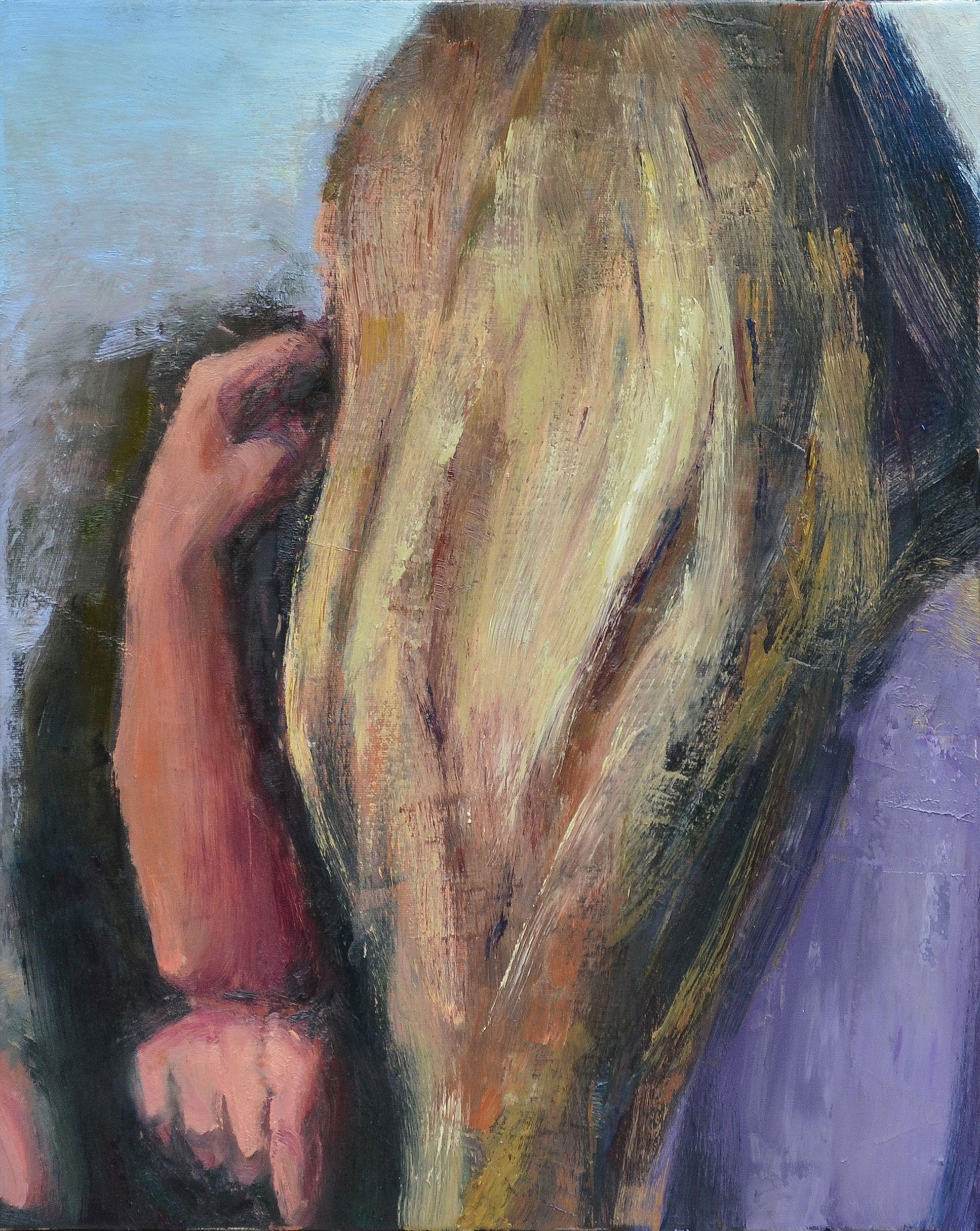 Hairystroke is part of the painting cicle Veroera, where I use the biblical story as a starting point to address related themes of physicality of the painting process, status of the work of art and image making in general. Each work complements the initial story and conveys different aspects of it. The female figure is the key motif of the artworks, embodying the emotional, sensual, lyrical and romantic connotations of the subject.