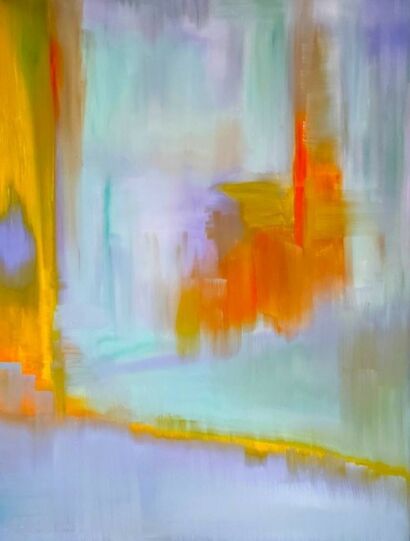 La mia opera è un viaggio attraverso le emozioni e le dimensioni metafisiche, un esplorare l’invisibile con colori vibranti in acrilico. Le sfumature di arancio e viola parlano di passioni profonde , quiete ed introspezione, invitando chi guarda , a perdersi in un mondo che sfida la realtà tangibile. L' opera porta un'energia di riflessione e meraviglia, ideale per arricchire ogni ambiente con un tocco di mistero e bellezza ineffabile.
