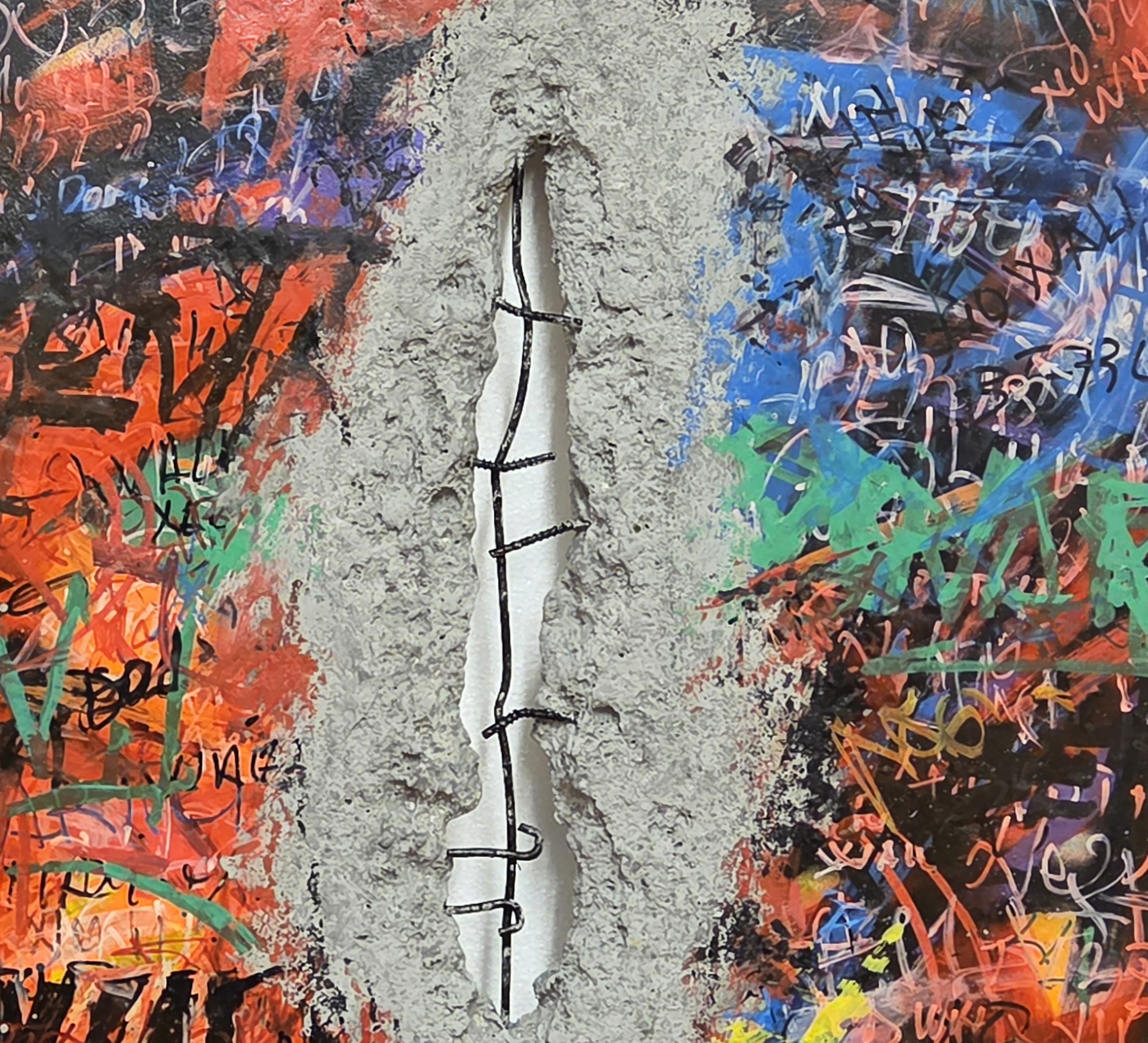 L'opera fa parte di una serie intitolata MURI DI GUERRA con questa serie l'intento e quello di sensibilizzare chi si pone davanti all'opera dei gravi problemi che stiamo vivendo negli ultimi anni il vero senso è quello di una pace comune e comprensione reciproca