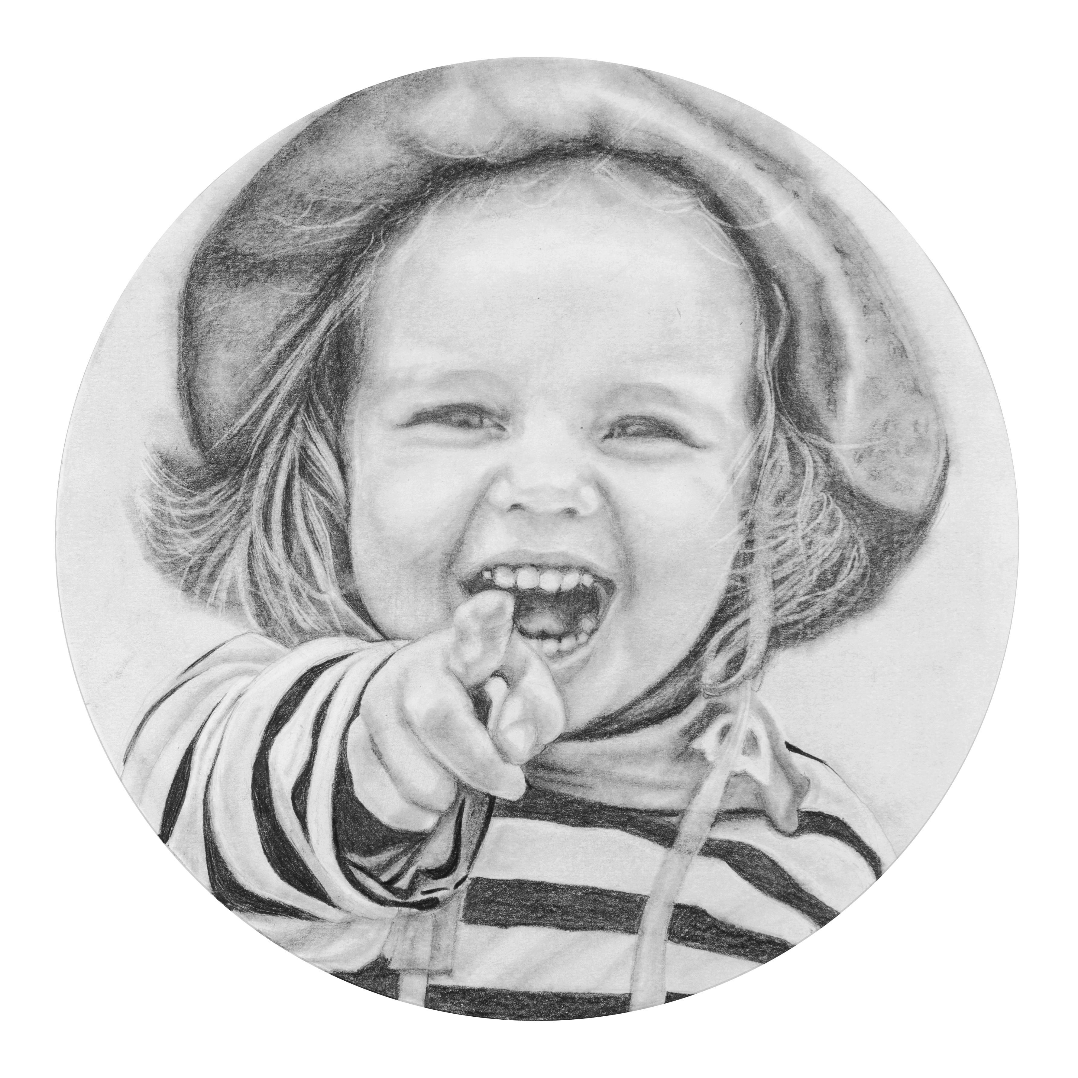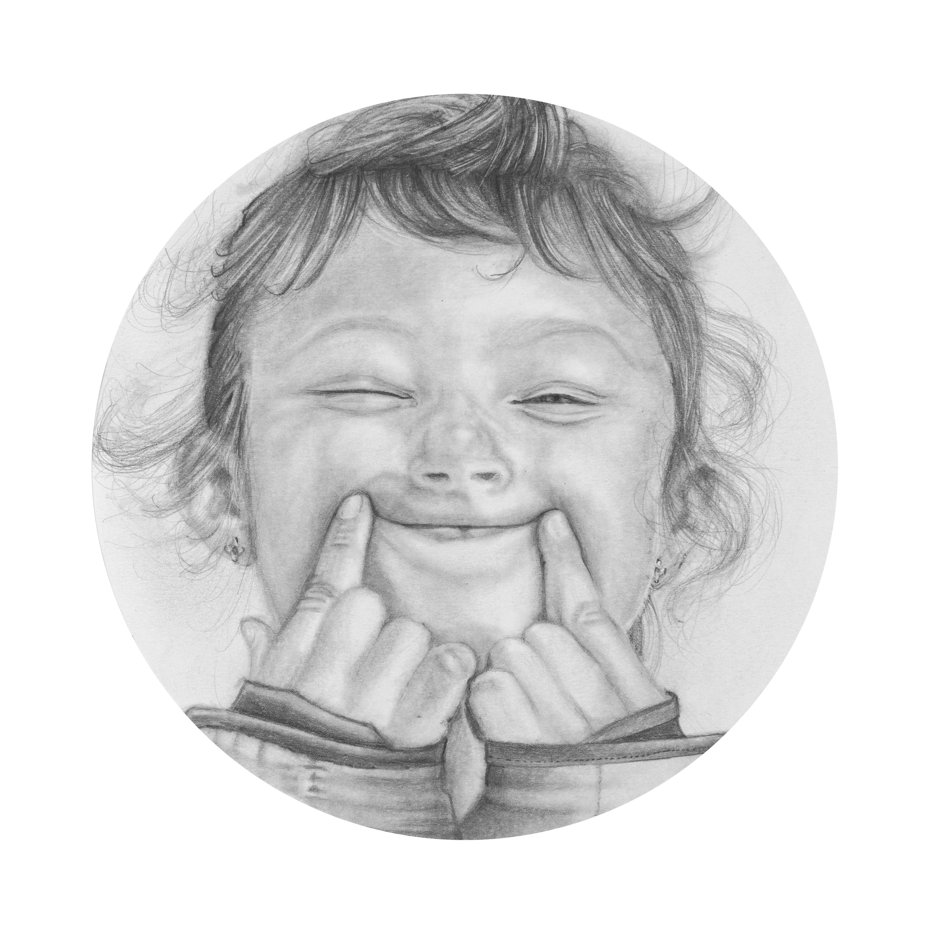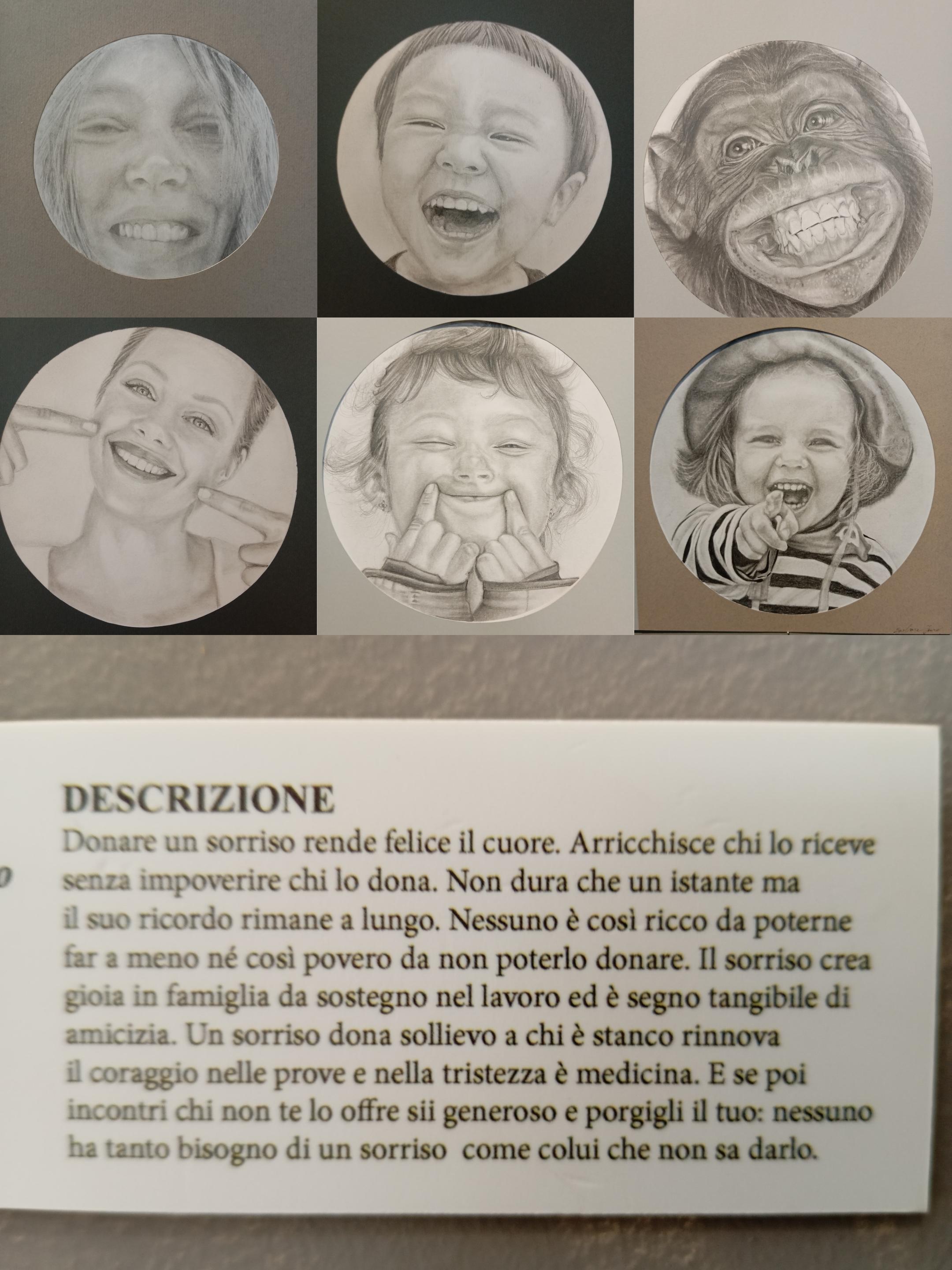 sei disegni a grafite su cartoncino liscio che vogliono esprimere l'importanza di un atto semplice come un sorriso come lingua universale.