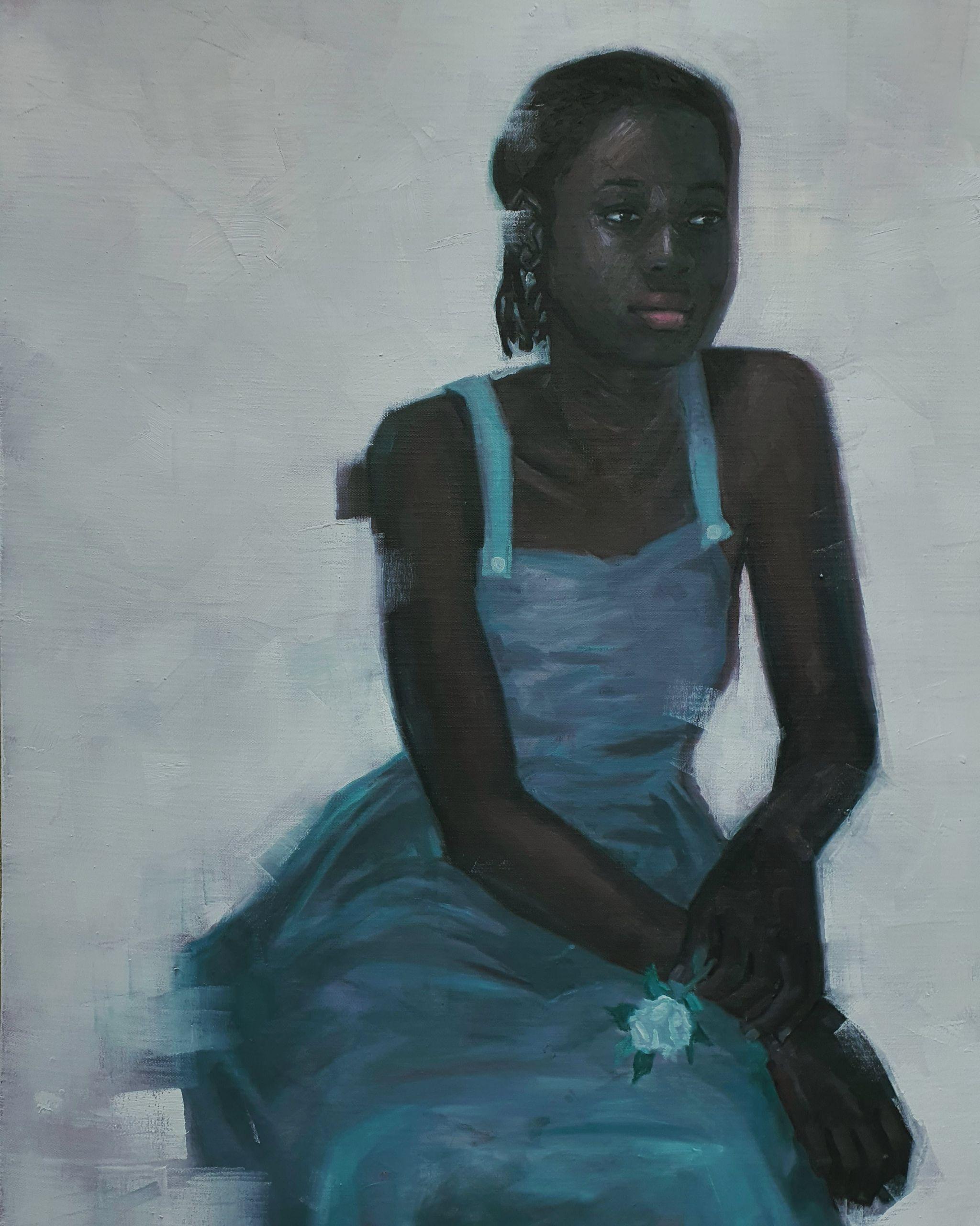 Open, with a hint of playfulness, a direct look and confident, frozen in motion, the stately figure of the maid creates an amazing sense of the dynamics of the whole picture. The white background and the tender gaze emphasizes the romantic air image of the girl. She, like a rose bud, is ready to open in all its glory, the girl captivates and fascinates with her appearance