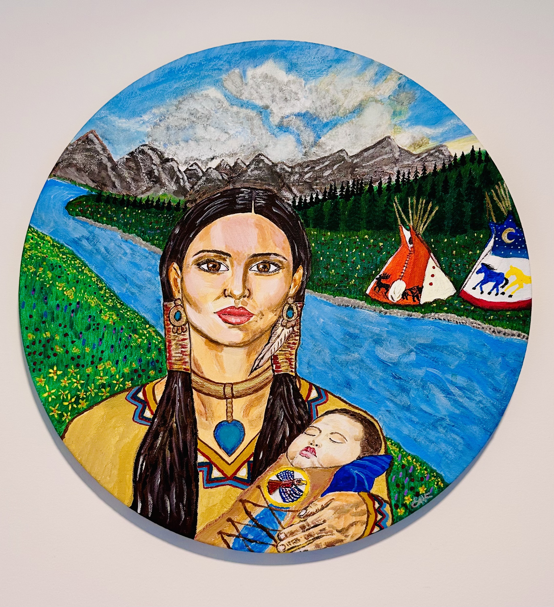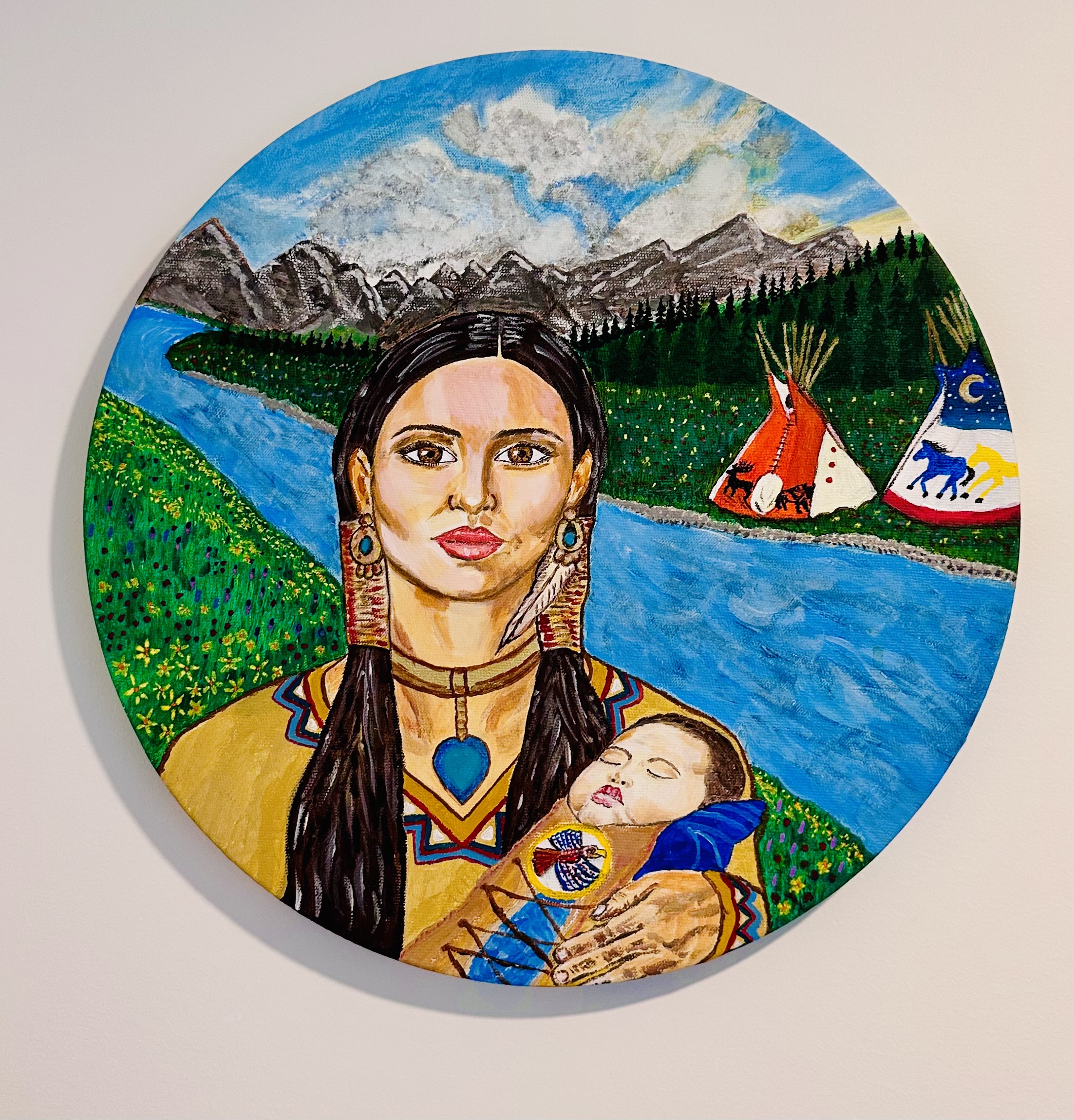 Cry Me a River, honors the resilience of Indigenous matriarchs in the Canadian Rockies. Inspired by Lake Louise, this portrait captures a mother carrying her child, embodying the strength of ancestral women who led through love and sorrow. Her stillness holds centuries of silent leadership, grief, and devotion. The river behind her flows with memory—of loss, legacy, and eternal connection to the land. This piece is a tribute to women who lead from the heart, cradle life, and rise with the wisdom of generations.