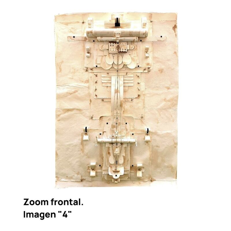 "Maternity" is a tribute to women. To her courage, her dedication and her generosity. This collage tries to reflect the purity of her values by building structures with organic and natural materials such as amate paper, hemp rope, jute or wood.