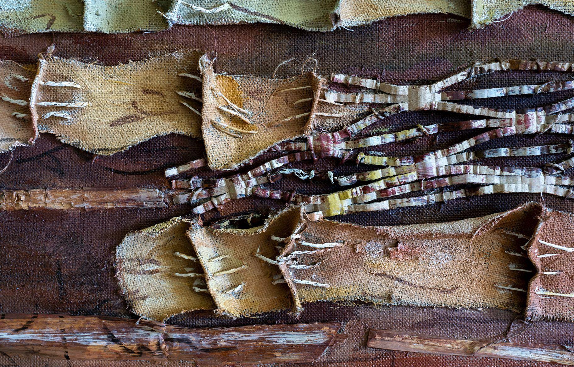 Bei diesem Werk entstehen Rhythmus und Harmonie durch Komposition und Farbgebung. Feine Farbnuancen von Grün-bis Rot-und Brauntönen