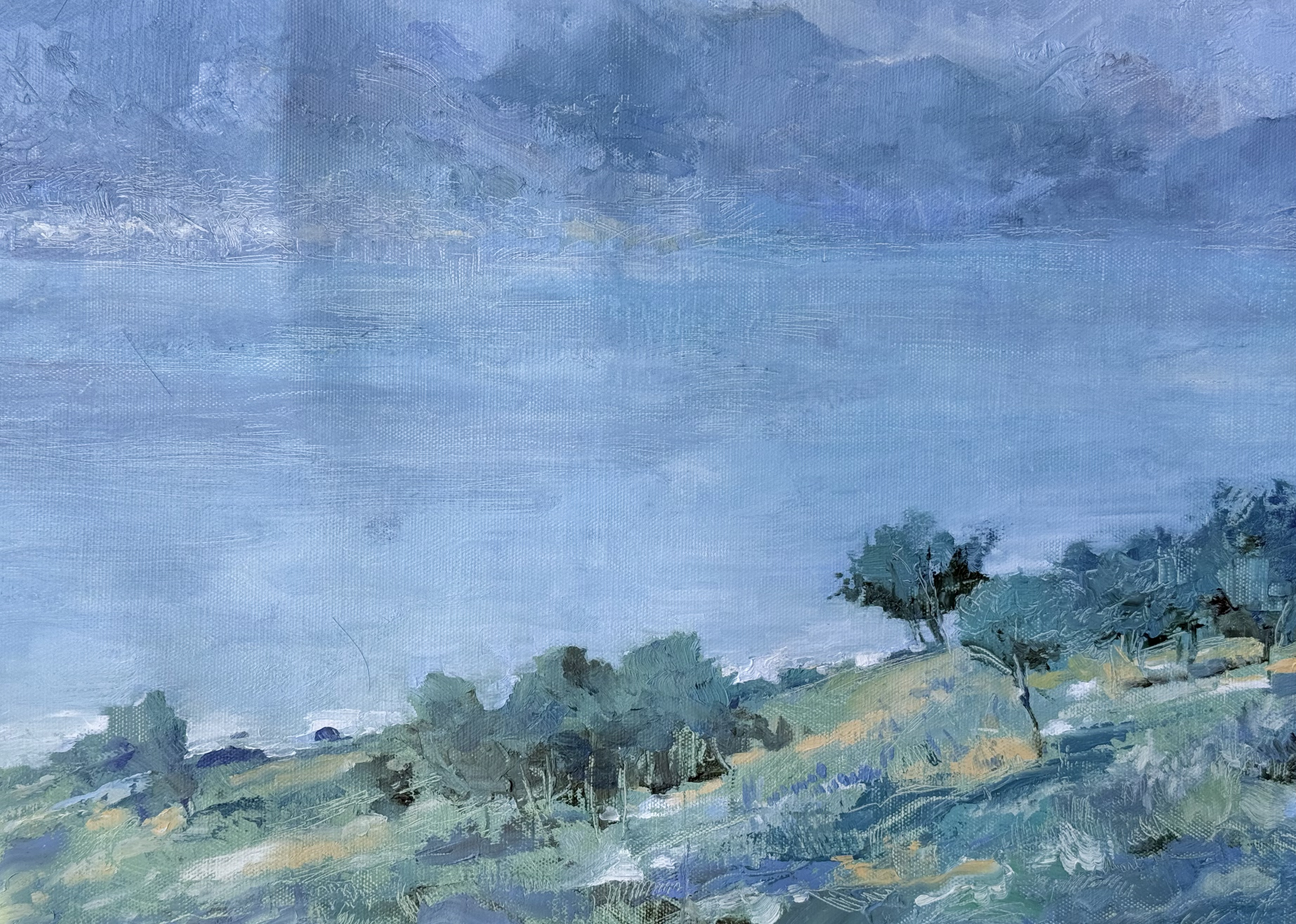 "Rainbow of Gratitude" is a synthesis of my profound personal and artistic journey in Alanya, Turkey. Created just before my departure, this large-scale oil painting captures a rare double rainbow emerging over the mountains and the sea—a moment I perceived as a powerful sign of hope and transition.