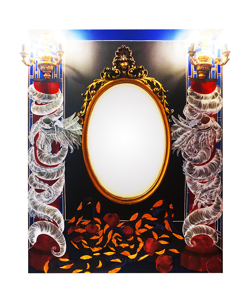 Acryl , Oriental paint, Antique mirror, Antique lighting