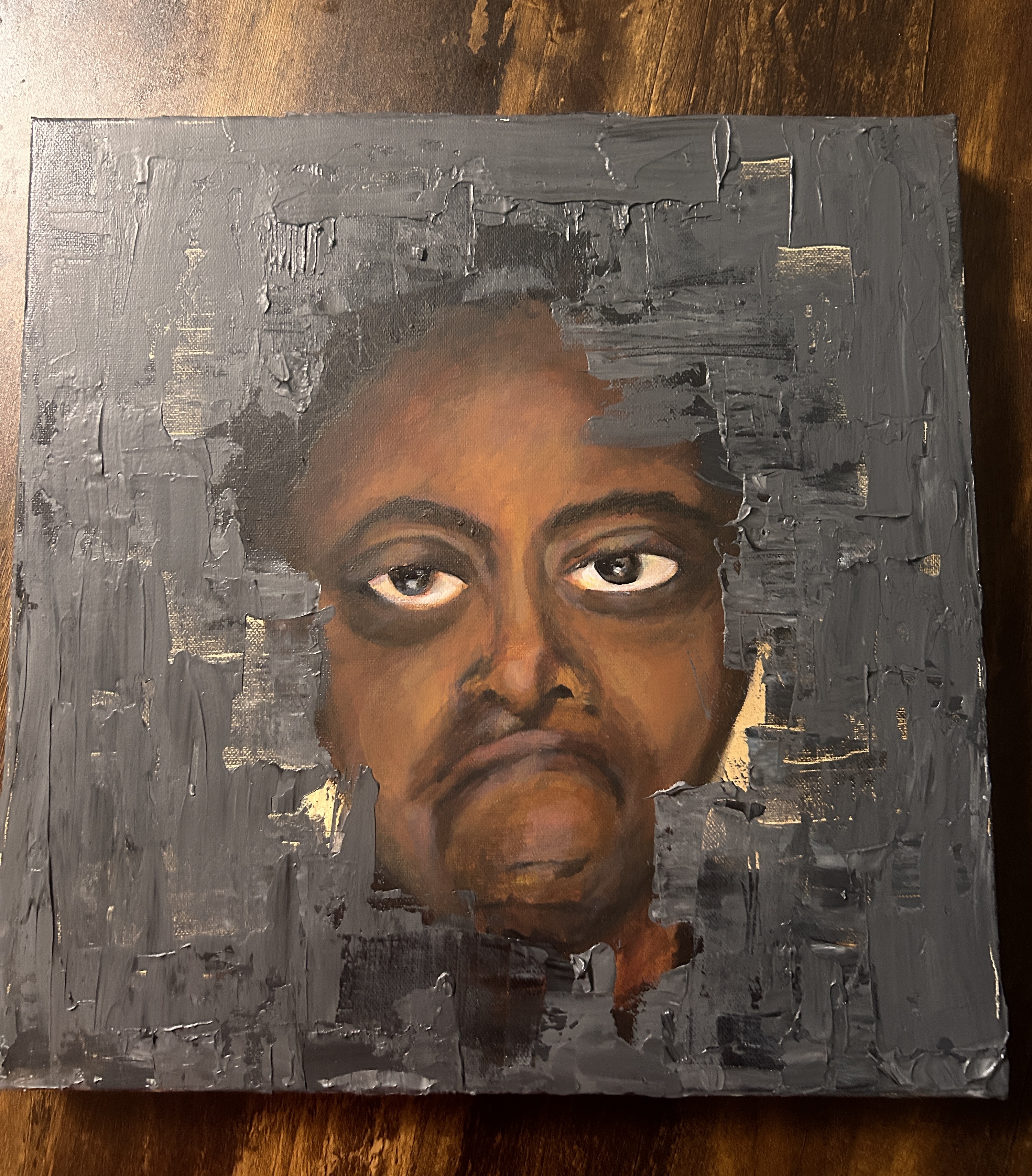 Marie Ayodele is a London-based emerging artist whose portraiture explores identity, introspection, and human connection. Her work is shaped by her frontline role in the homelessness sector, where she witnesses resilience and vulnerability daily. Through textured brushstrokes and layered compositions, Marie highlights the often unheard stories of those she encounters. Her art is both a personal and political act centred on social justice, dignity, and empathy. Each piece invites deeper reflection, encouraging viewers to see beyond the surface and engage with lived experience. Marie’s practice transforms portraiture into a tool for awareness, connection, and quiet but powerful advocacy