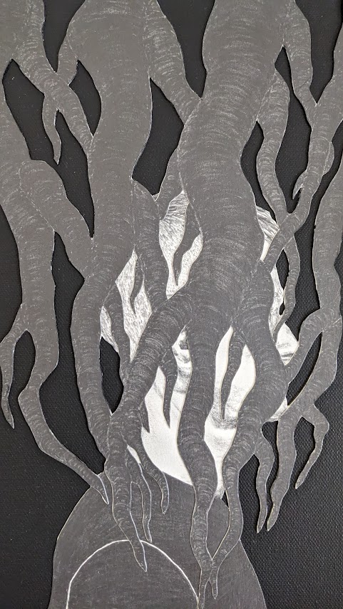 Shroud is a constant reminder that this life is all that we know and once gone we're faced with the unknown. Is this it? Is there something beyond what we can imagine or explain scientifically? This life, as beautiful and precious as it is, is just a tiny blip in time. This piece deals with my struggle to appreciate the current for the fear of the certainty of an unknown.