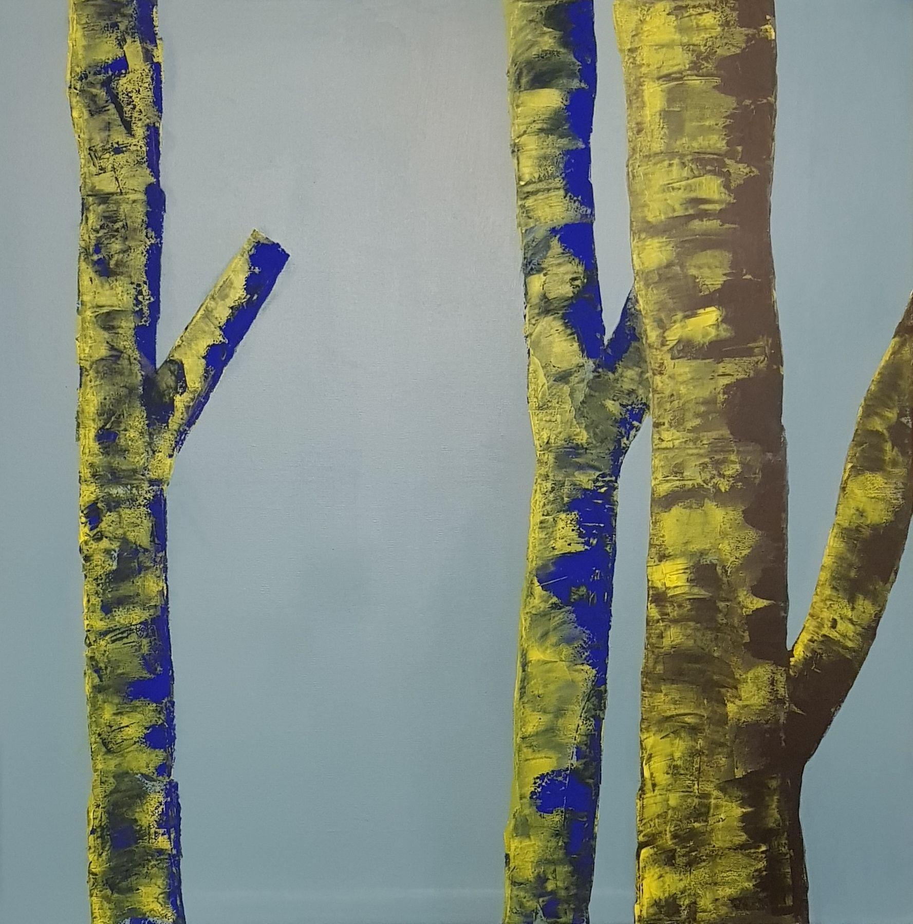 Tre alberi è un figurativo che rappresenta la solitudine della natura, abbandonata e tradita dall'uomo.