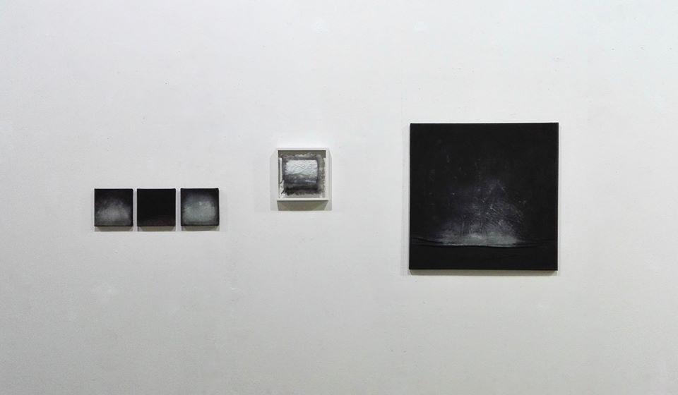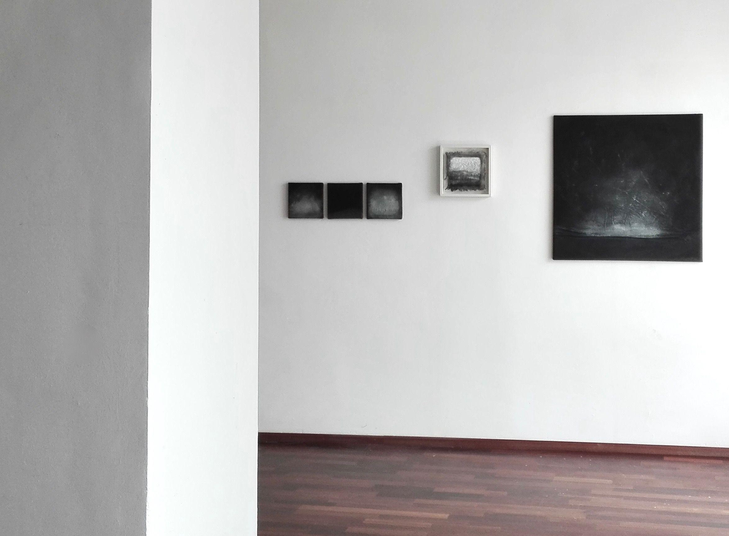 This series TO BE AT HOME IN TIME / Day & NIGHT Nr. 1 - Nr. 5 (from left to right on the exhibition view picture) was created in the midst of the pandemic out of the artistic examination of the theme, recurring rhythms of DAY and NIGHT.