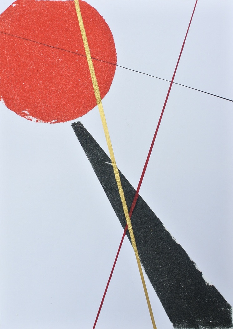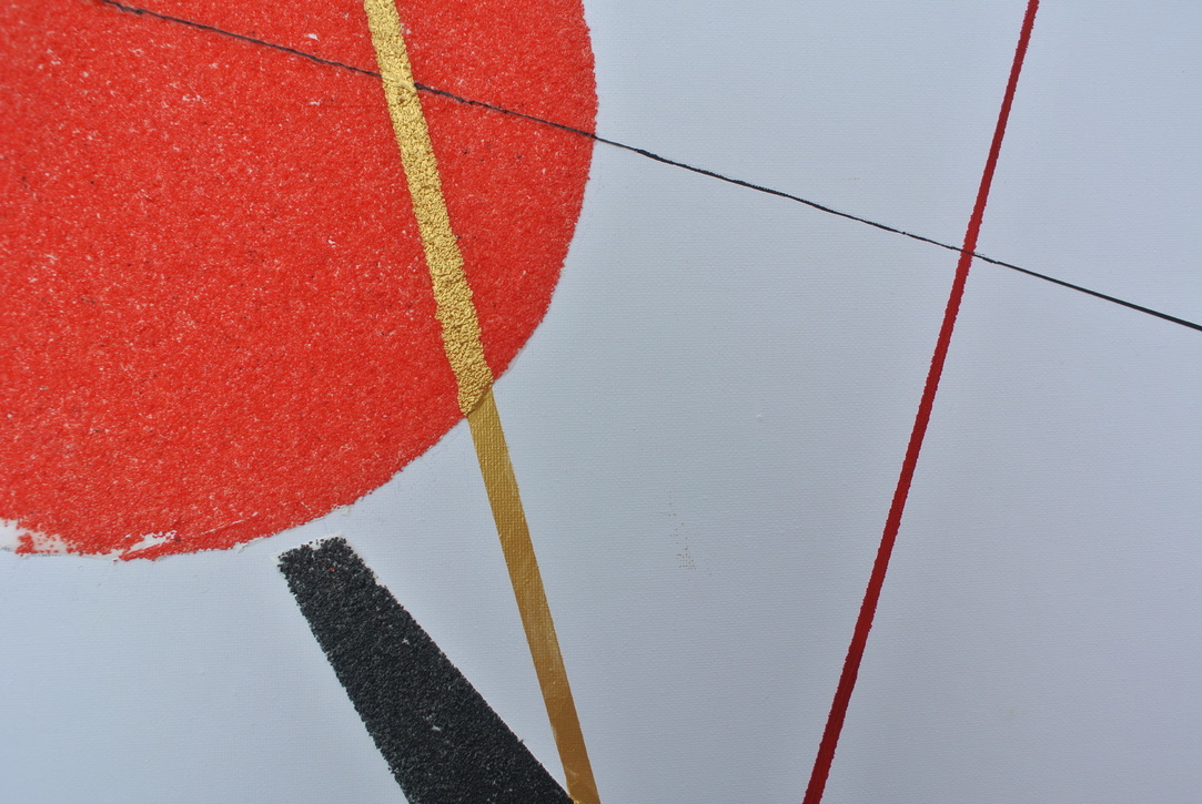 layered on canvas: putty covered with sand and glue. The lines are acrilyc paint.