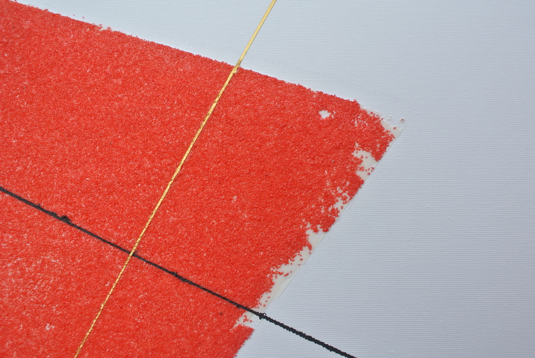 layered on canvas: putty covered with sand and glue. The lines are acrilyc paint.