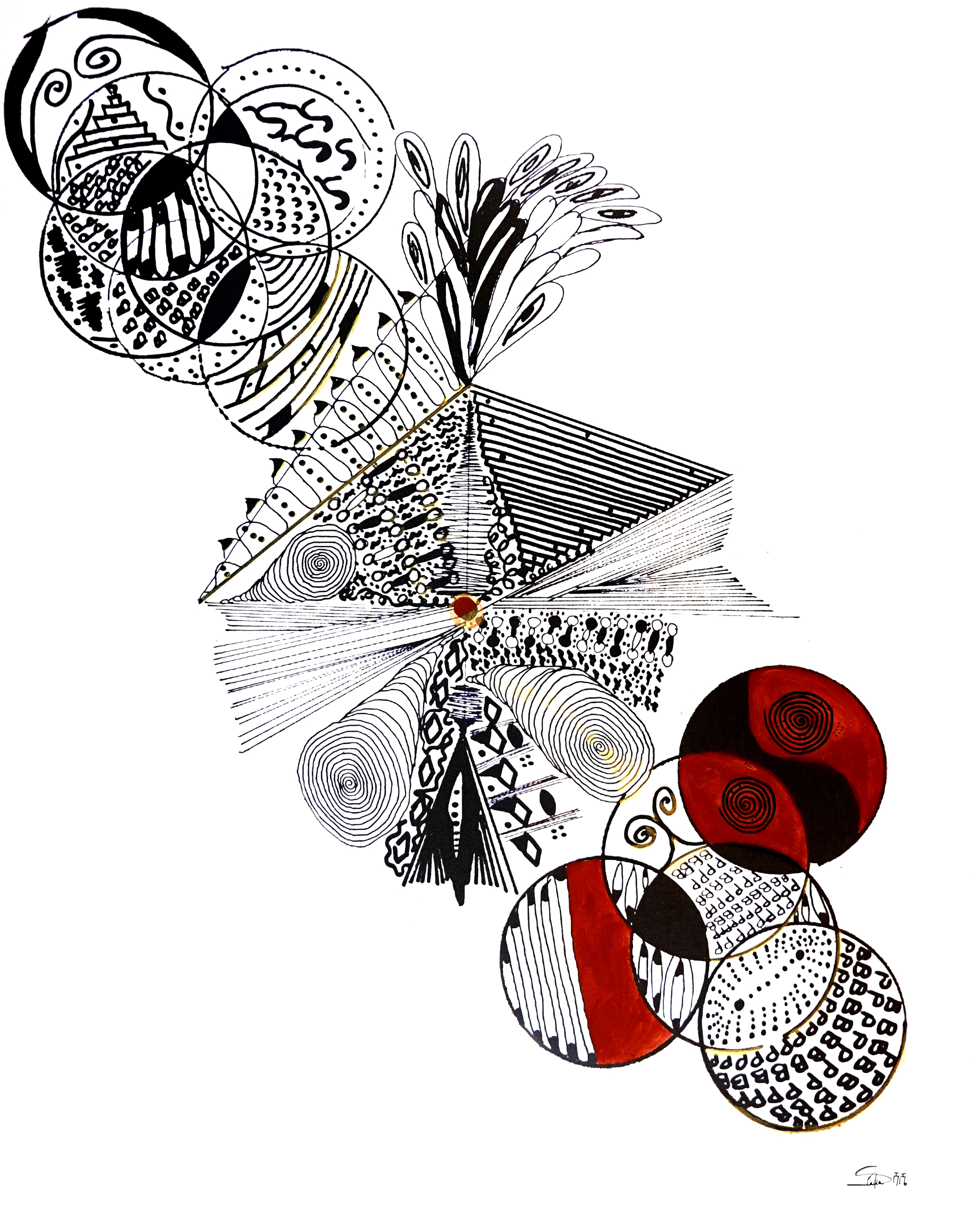 Ispirata alla ricchezza culturale dell’Etiopia, l’opera costruisce una trama di segni intrecciati che richiamano simbolicamente l’immagine delle radici. Le forme si sviluppano sulla superficie pittorica come un sistema di connessioni che evoca appartenenza, memoria e continuità culturale.