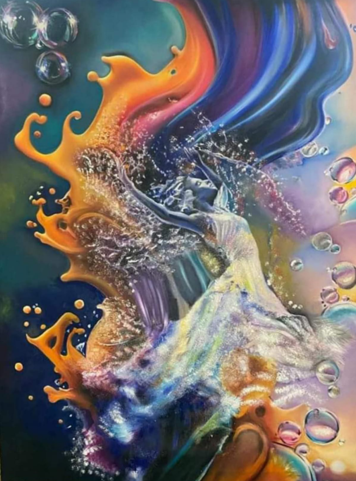 Il dipinto parla soprattutto del rapporto con la natura, dell'importanza in senso metaforico di immergersi in essa, visto che, molto spesso questa odierna società tecnologica e ben venga il progresso, si limita a: sporcarla, deturparla, inquinarla, annientarla e criminosamente nell'ultimo decennio a incendiarla.