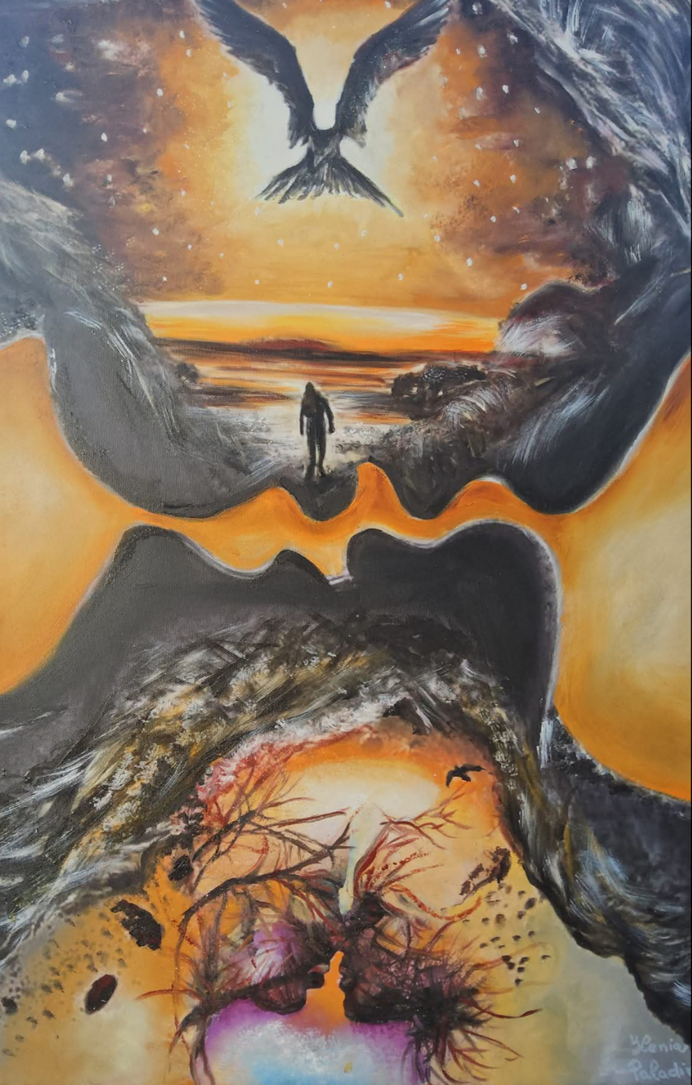 L'Arte è riconoscere, comprendere e registrare i paesaggi interiori, più che limitarsi alla sola rappresentazione dei paesaggi esteriori. L'Arte funge da mediazione, da relazione, da quell'abbraccio che si incurva nell'orizzonte e permette, da una parte il congiungersi del cielo e del mare e nel suo opposto, si ha l'incontro tra la terra il fuoco.