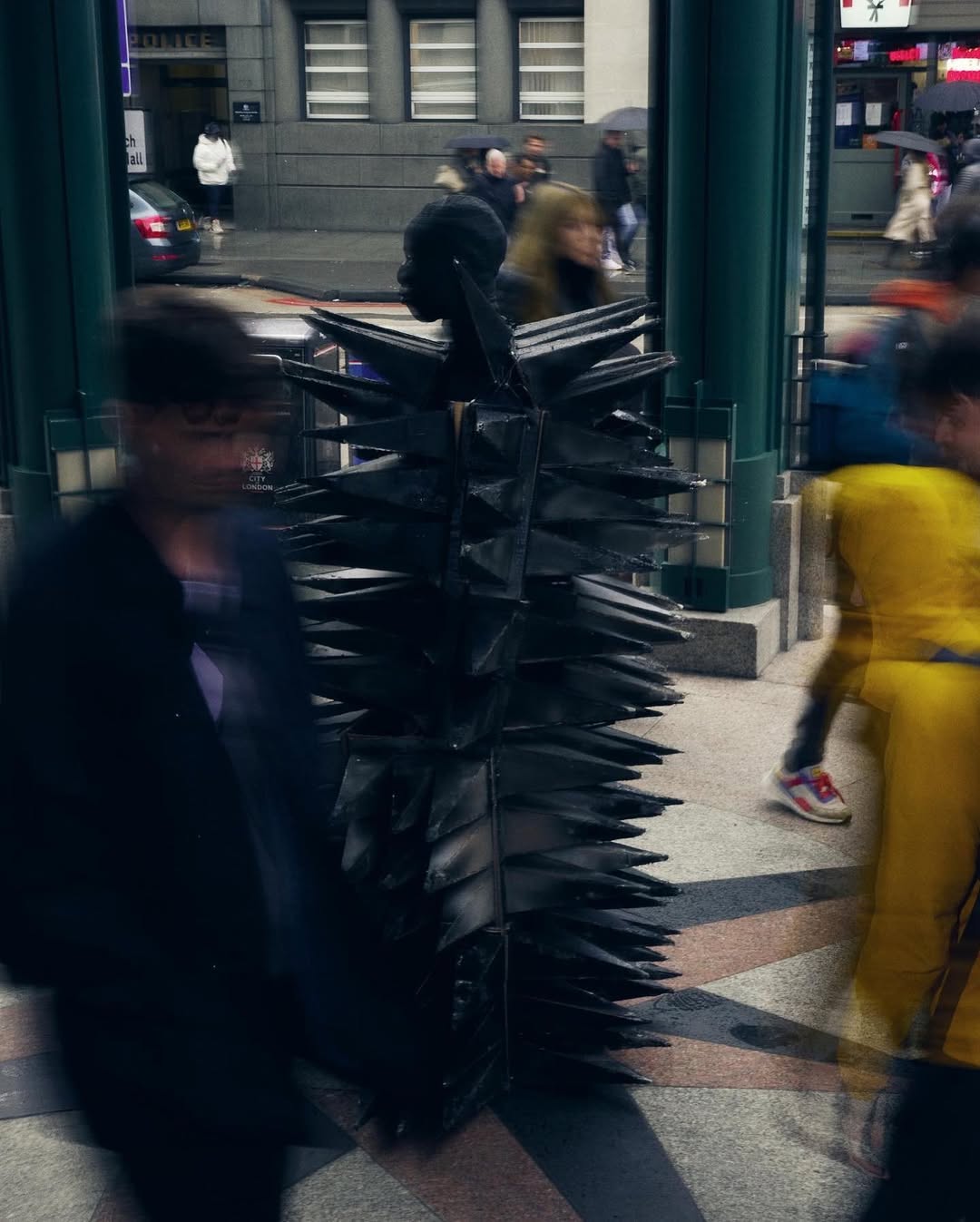 On October 27th, 2023, I took the sculpture to the busy streets of London, placing myself in crowded areas for several minutes to hours.
