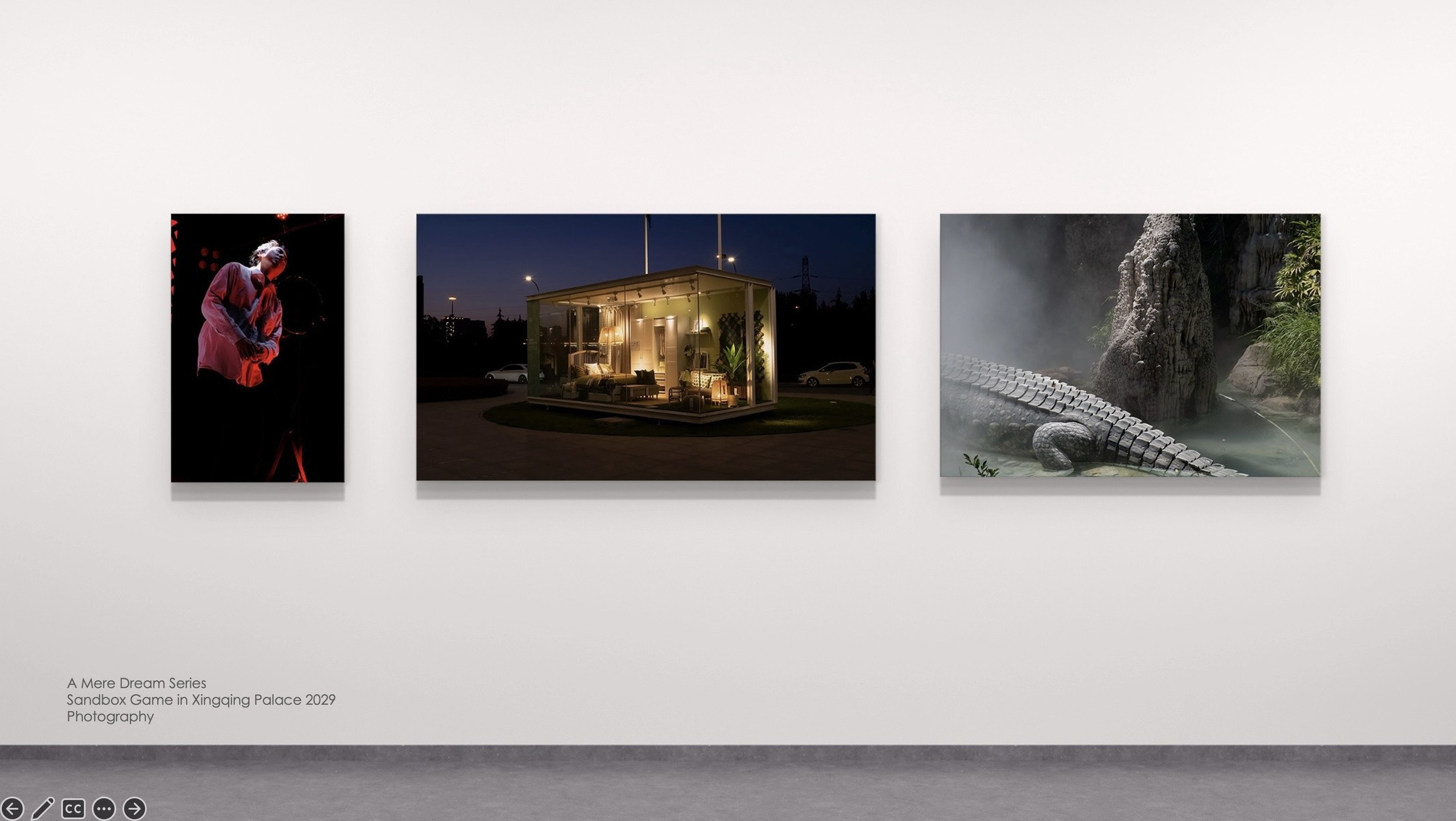 These images drift along the boundary between dream and reality, imagining home as something that can be loaded, assembled, or even forgotten—like an interface. In the digital night, the warm glow of a living room floats on desolate ground, a temporary refuge suspended in illusion. A primeval creature seems to linger in a misty pool, guarding a long-abandoned memory. And a body bathed in red light stands between rapture and detachment, awaiting some quiet awakening.