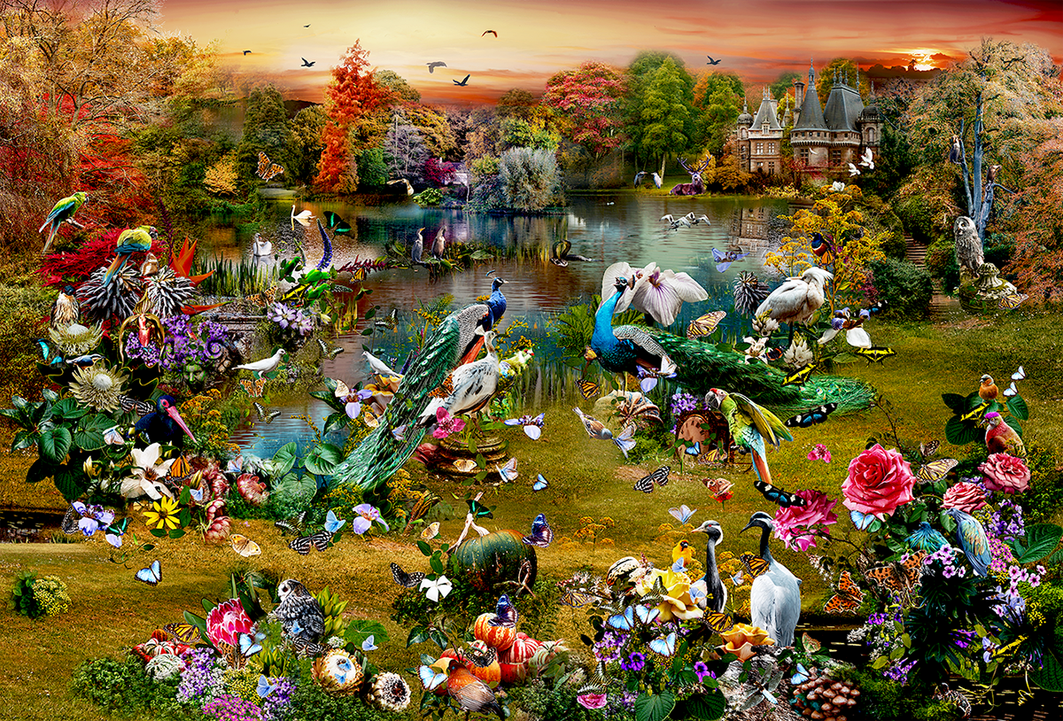 " Nature's Majesty" is a collage comprising 612 pieces of my own photographs. My travels with the camera inspired me to create this image, combining many, many places into one very large piece of work. I would love to remind you how beautiful and peaceful our planet is. The pure nature of plants, trees, and flowers, where all of this is dominated by many animals, is spectacular.