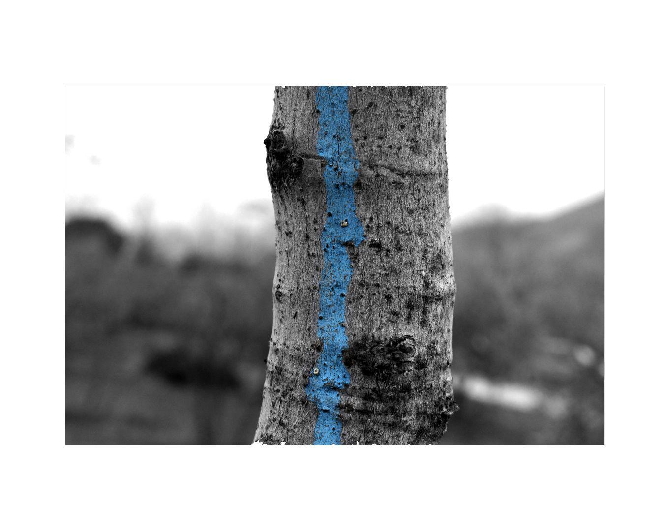 I wanted to pay homage to a tree that is very dear to me, which since I was born has become the plant to which, willy-nilly, I have had to and wanted to offer more attention and play. I have already dedicated to the olive tree and its fruits, a crude attempt at a video-rotoscope, which wanted to evoke the admiration and gratitude that I feel towards this wonderful plant, which annually offers us its fruits. This time my attention fell on its wounds, which, like those of other trees, have the peculiarity of being healed with mastic. The blue stains, which characterize the trunks in such a clear and significant way, touched me in a deeper way than ordinary mastic applied on any other surface could do.