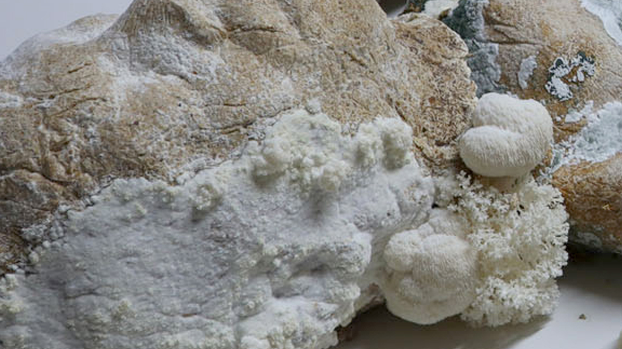 For The Fruiting Body, Lin works across different mediums depending on the context of the exhibition. In some cases, he presents living sculptures where the mushrooms grow during the show. In others, he presents the process through large-scale photographs. These are photographic prints mounted on aluminium.