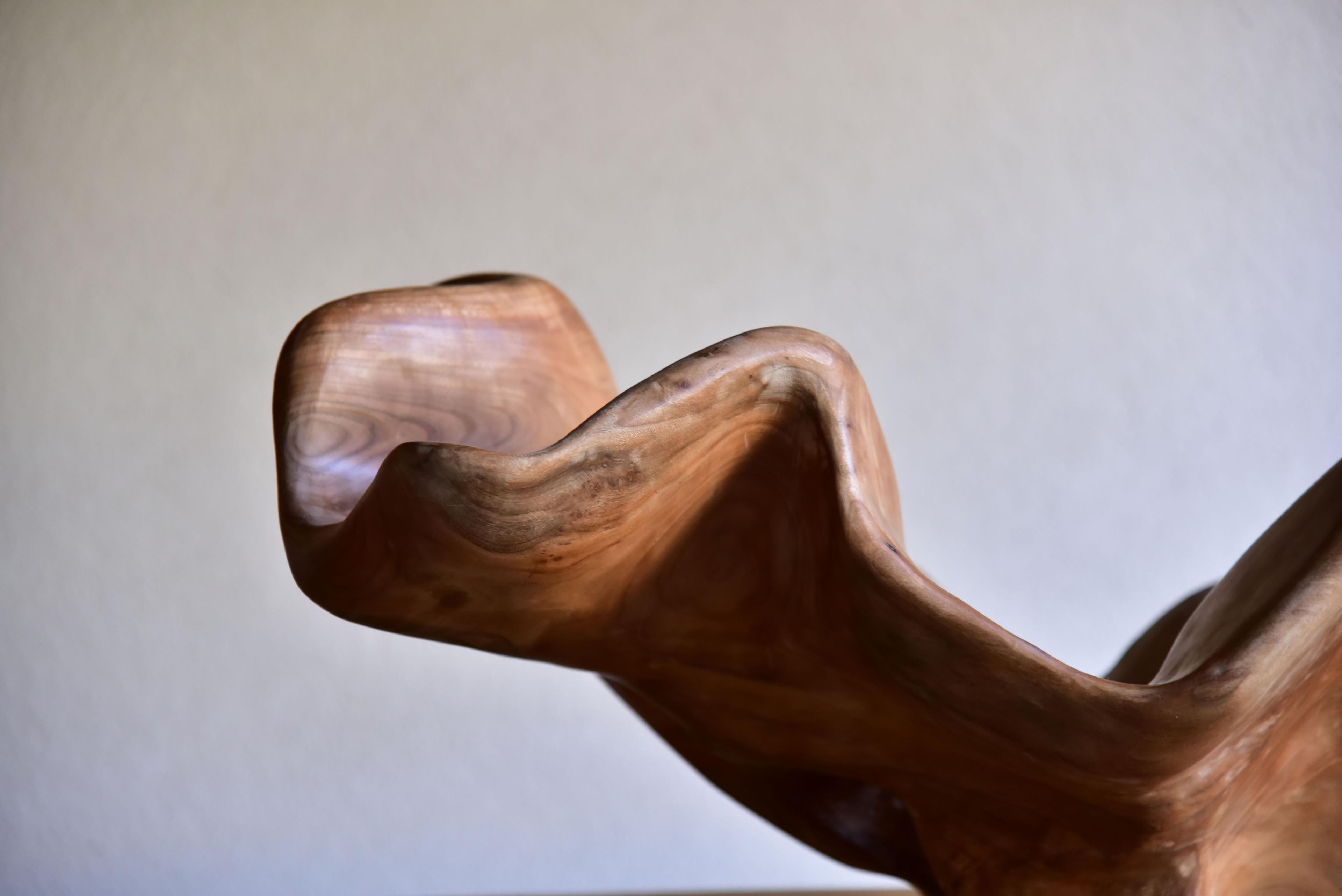Scoby Vase is a series of wooden sculptures, using fine woods such as cherry and walnut. Each piece is hand-carved with a chainsaw, blending the power of the technique with the delicacy of the material. The cross-cutting of the wood grain gives each vase a naturally unique and captivating pattern.