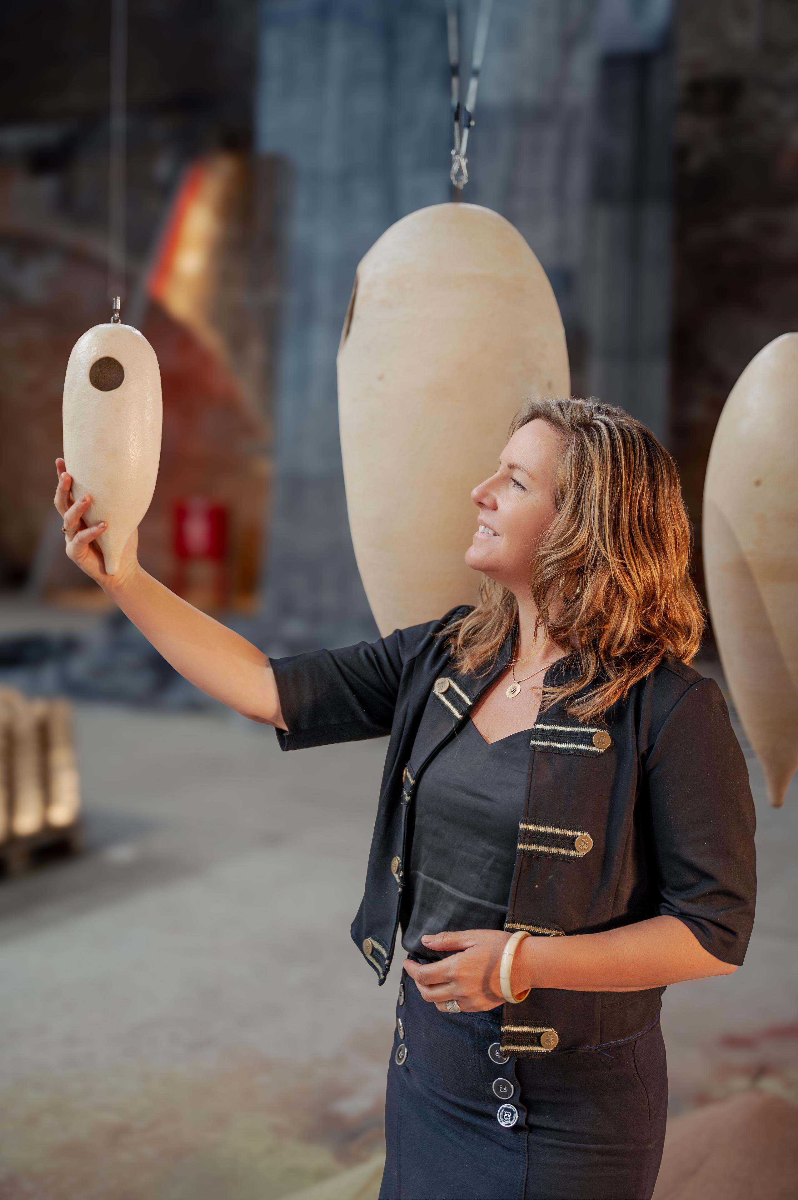 The work’s genesis lies in Barnes’ observation of mud wasps nesting in her studio. Their small ochred capsules—constructed from pigments drawn from her own collection—became a catalyst for translating natural design strategies into human-scale sculptural language. Biomimicry here is both process and poetics, expressing reverence for the intelligence of natural systems and their capacity to model resilience, adaptation and protection.