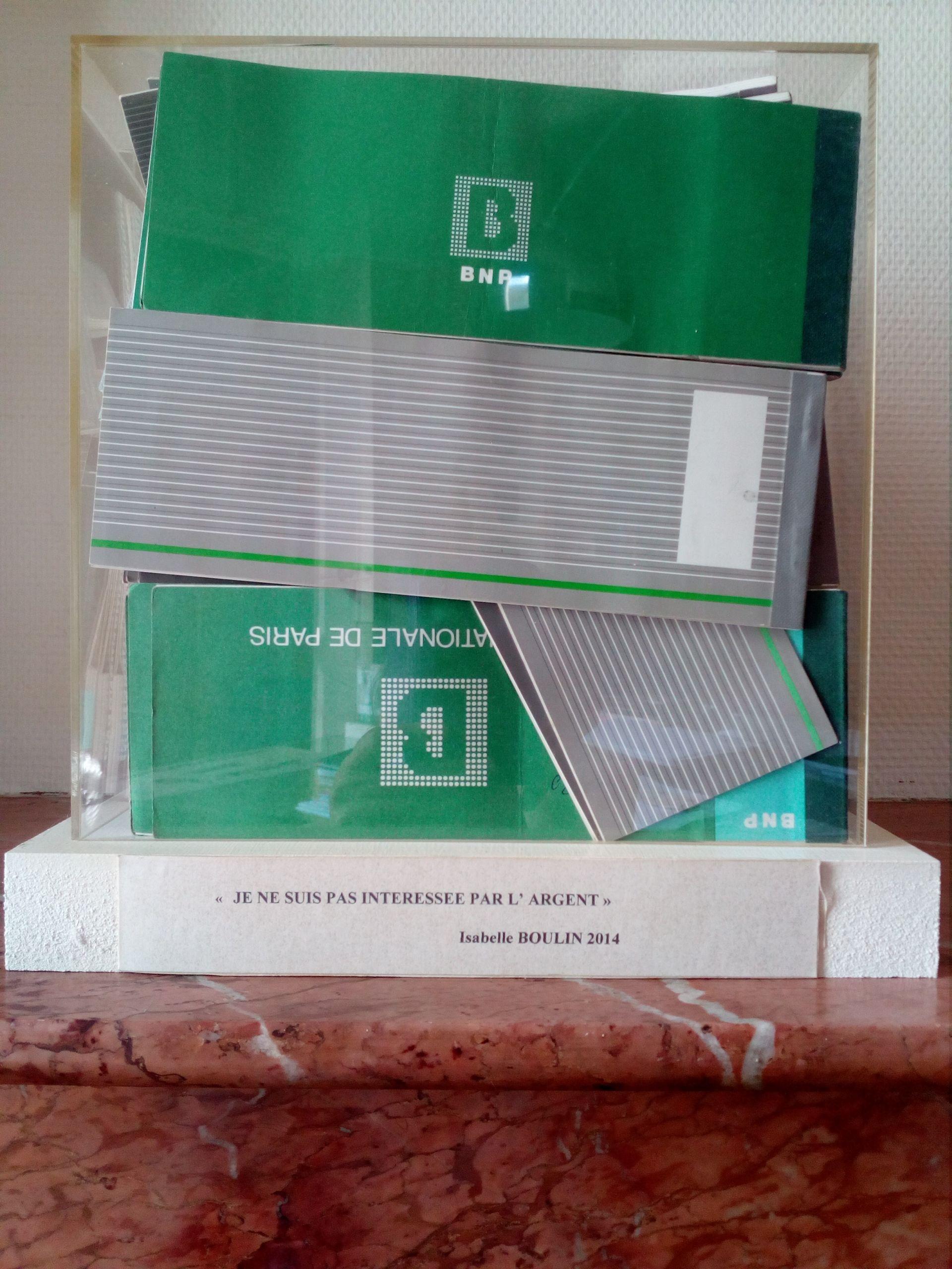 Material: plexiglass et chéquiers insérés dedans ....des vrais
