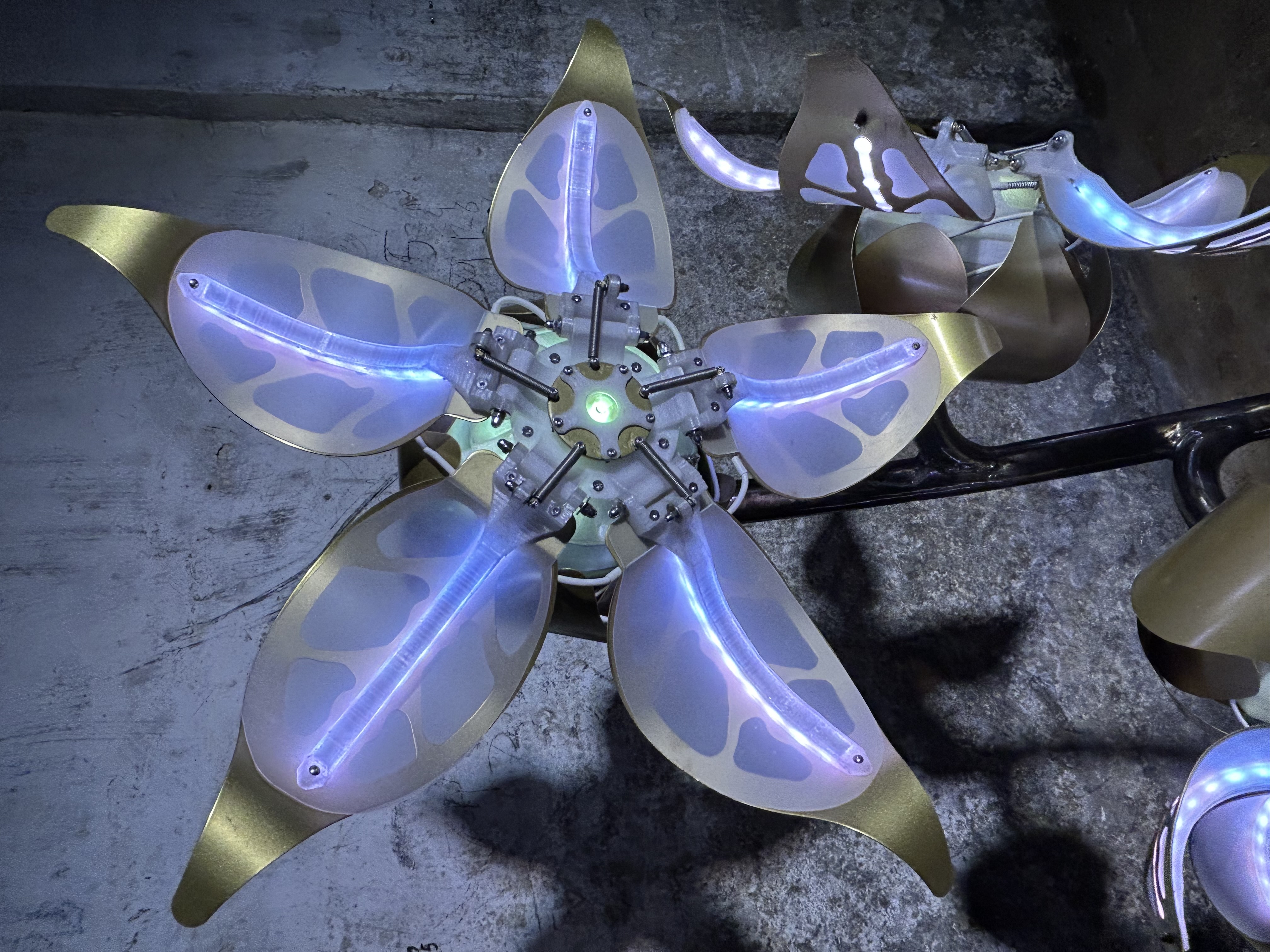 Gracias a sensores programados y un sistema de iluminación LED inteligente, la obra reacciona al entorno, modulando su luz y movimiento según la hora del día y la interacción del público. “Lux Natura” es paisaje en transformación, una flor tecnológica que respira al compás del mundo.