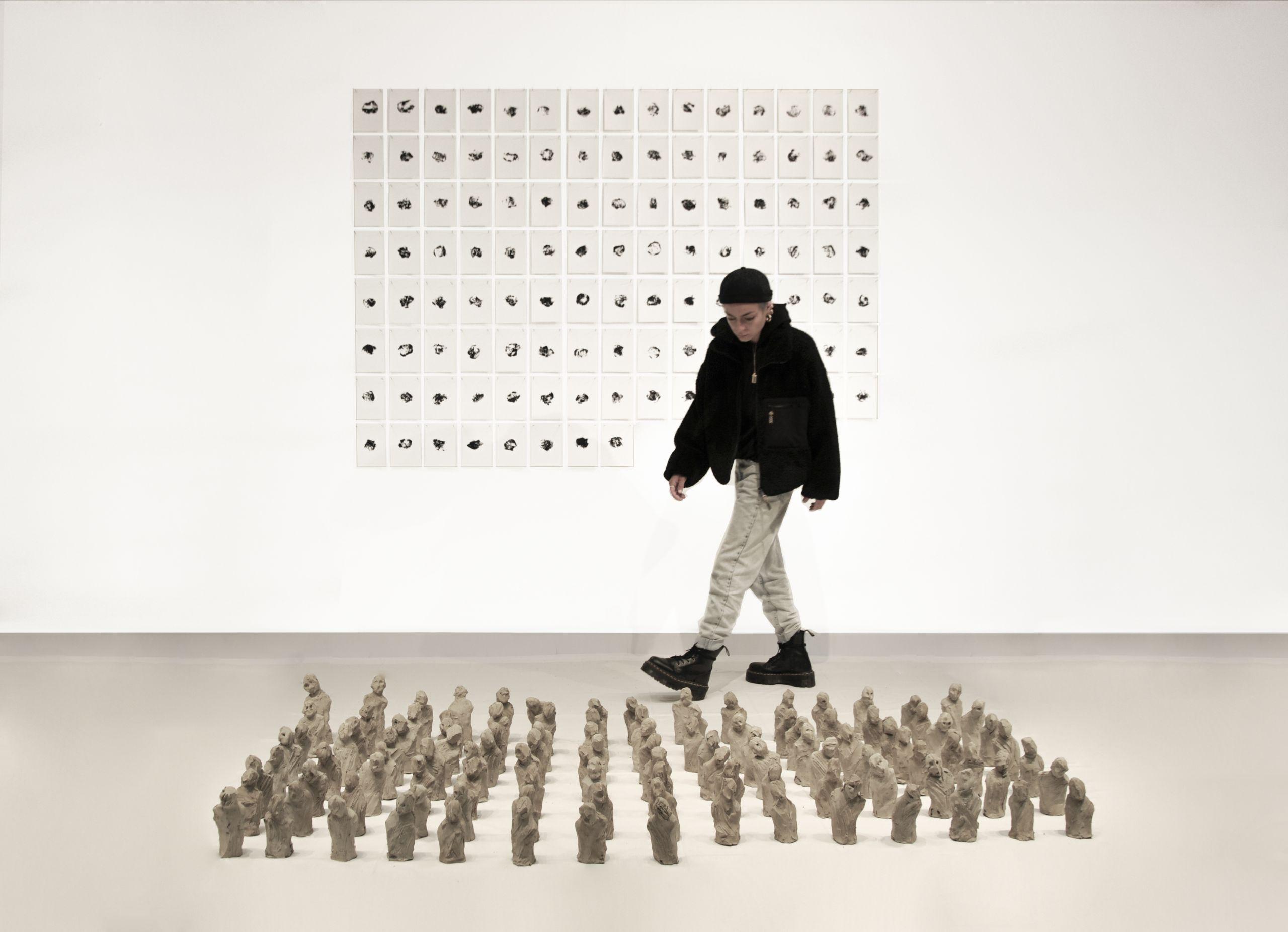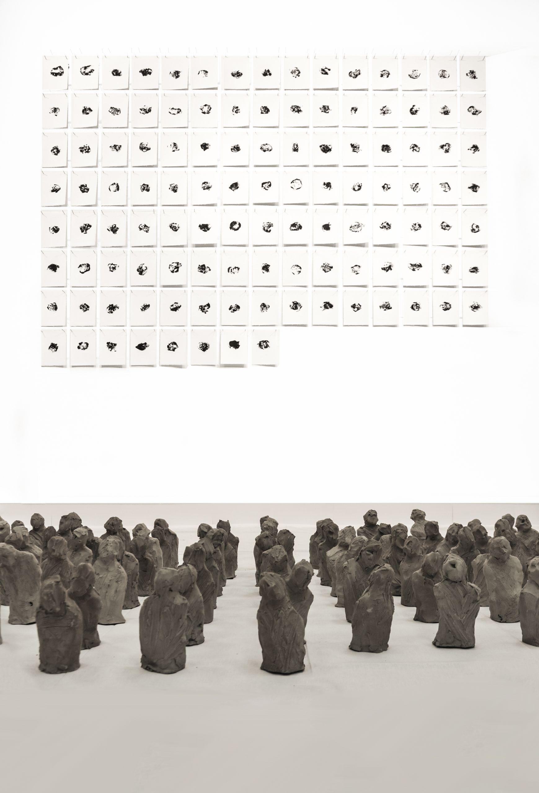 Troviamo una materializzazione del corpo, composta da tante piccole presenze scultoree; dei piccoli corpi grumosi di creta appena abbozzata. Il corpo diventa dunque luogo di sperimentazioni e trasformazioni, un campo in cui si costruiscono le identità, ed è soggetto alla contingenza al caso e a forze endogene ed esogene che possono dunque deformare la sua struttura figurativa, e la sua superficie che ne definisce la forma.