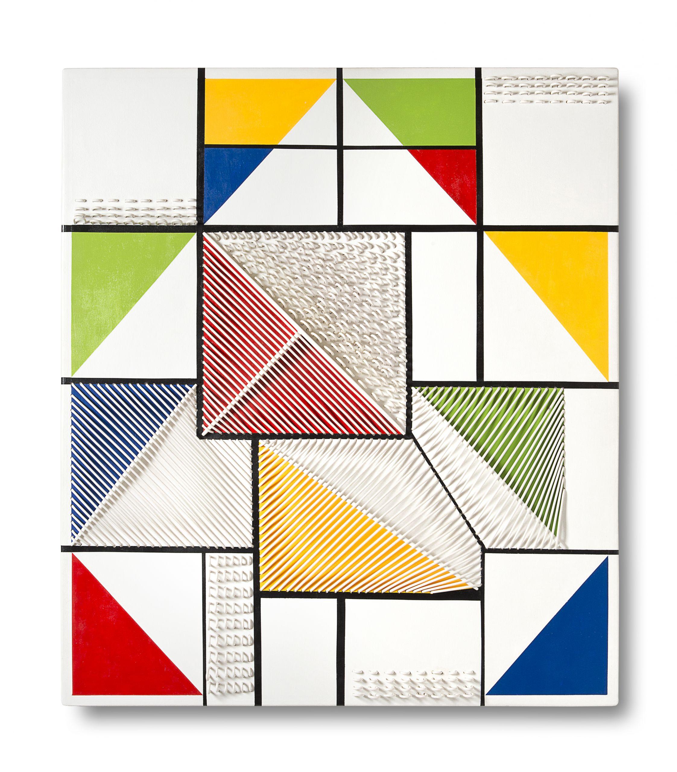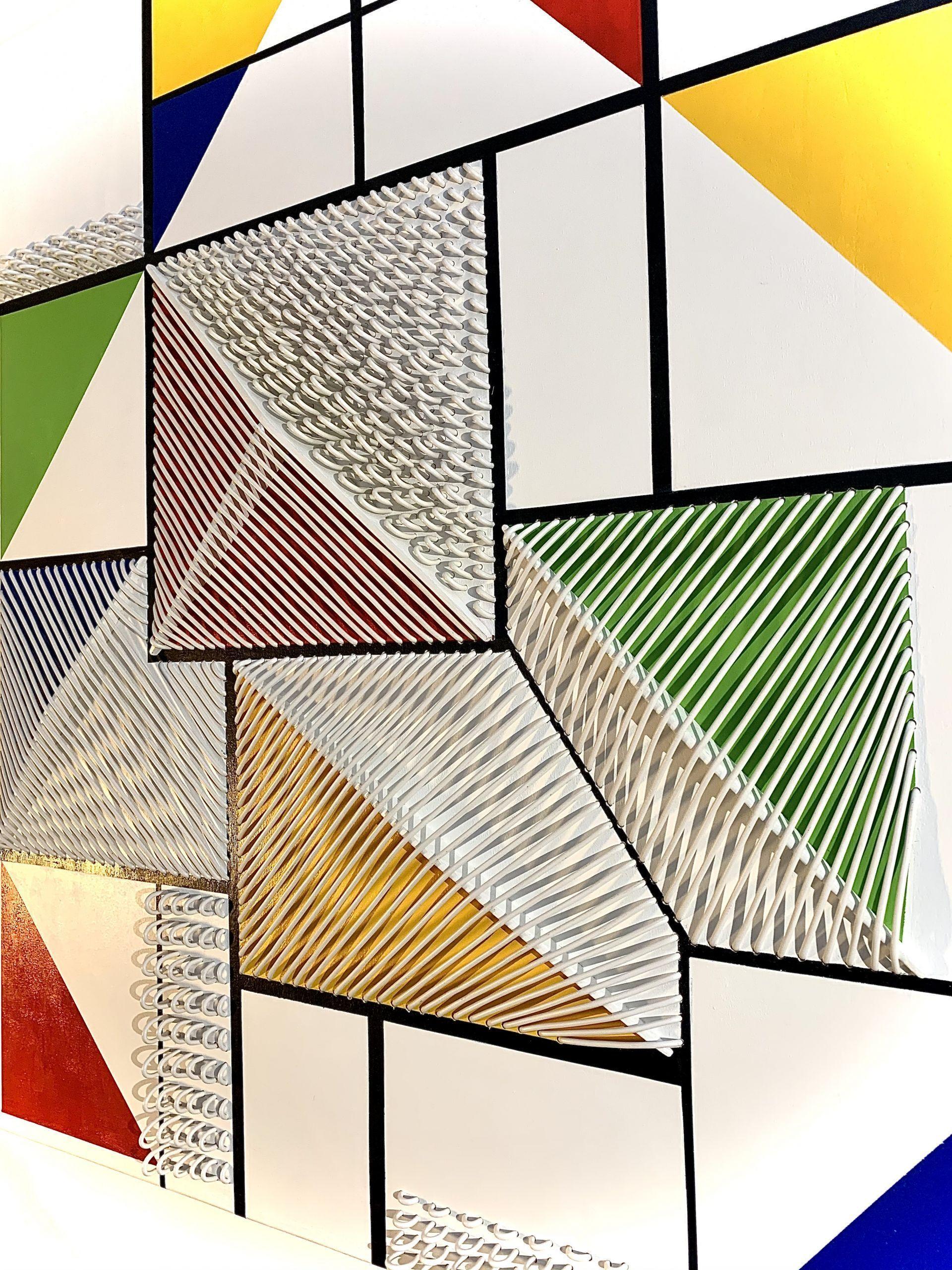 L'ammirazione nei confronti di Mondrian induce l'artista ad una interpretazione di astrattismo geometrico con questa tecnica tridimensionale con geometrie cablate: una rivisitazione con estroflessione