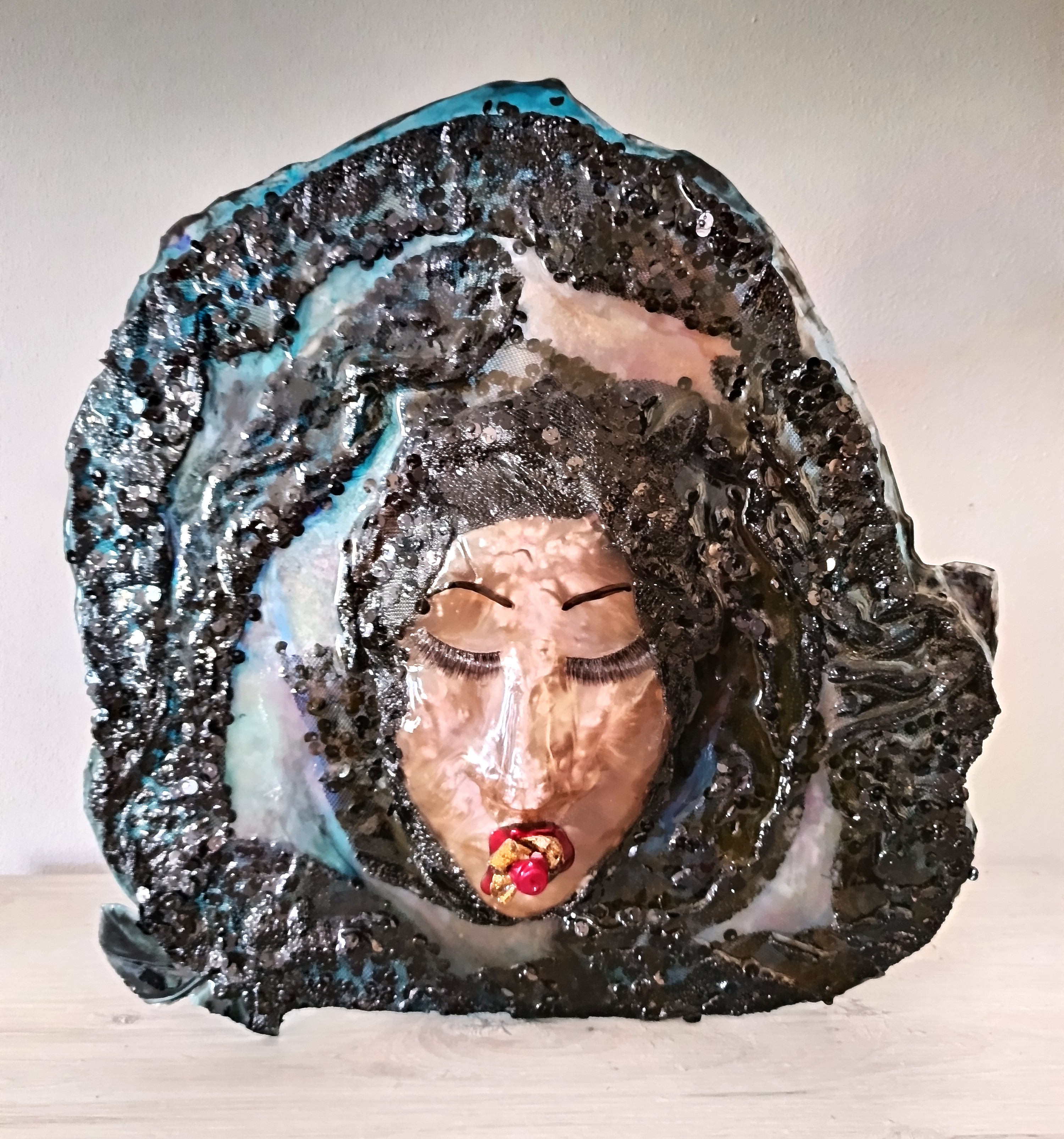 La scultura in resina è modellata con una tecnica inedita, meditazione