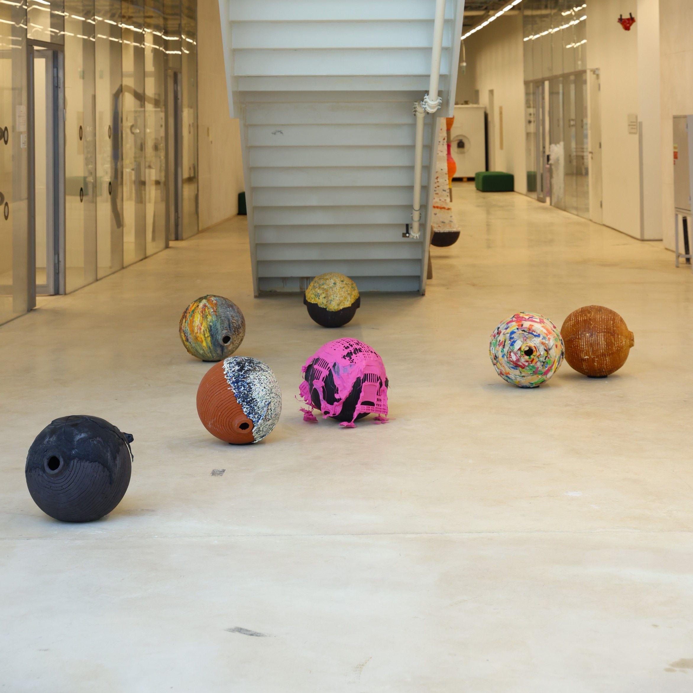 Through ceramic objects, plastic and mixed techniques, color and size, there is an attempt to take over the space and create wonder for the viewer about scale and power relations in relation to the work.