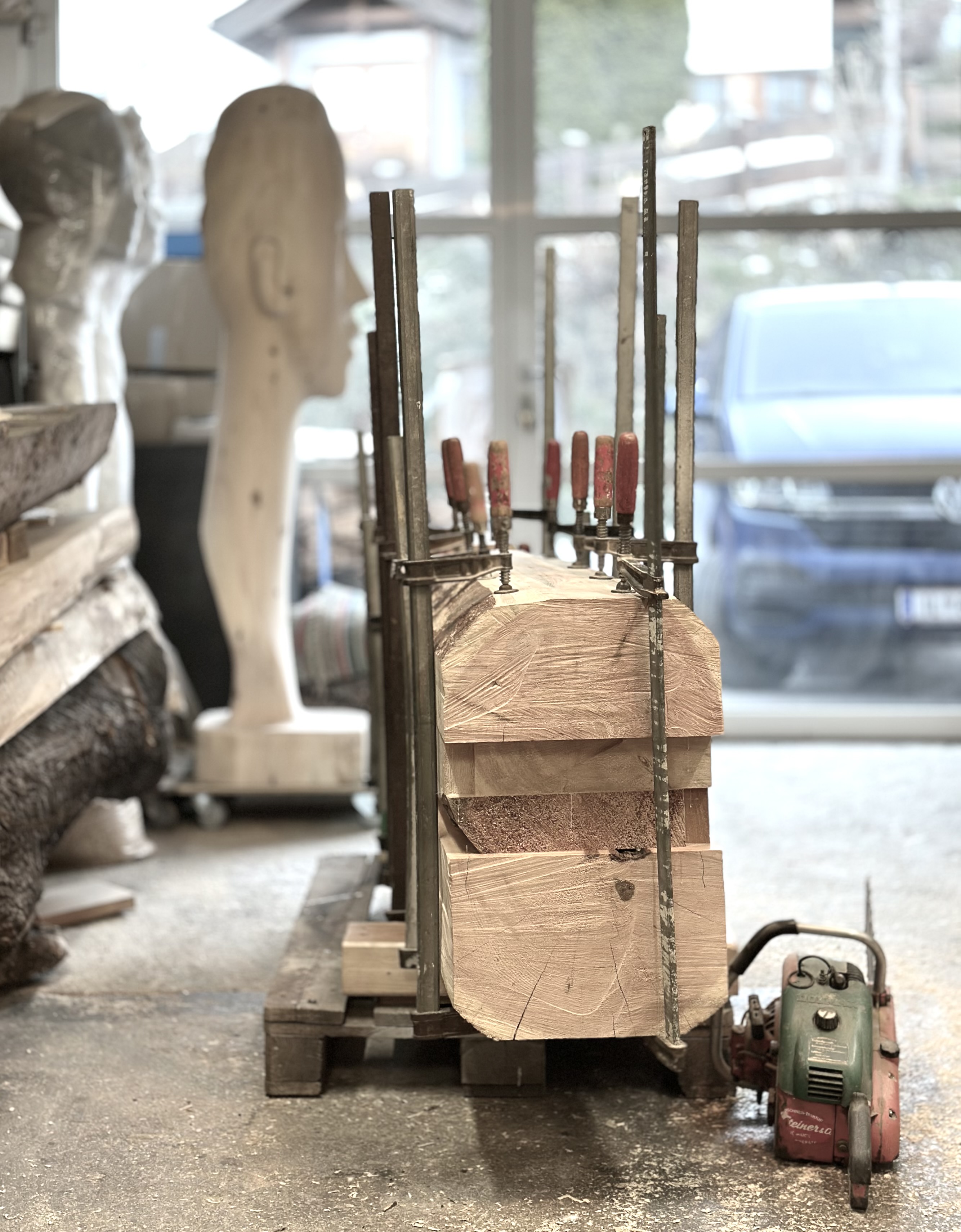 Today, in an age of rapid social development, the cyber world, and digitalization, I attempt to use sculptures to make the viewer think, to forget the world around them for a moment, to pause and not search for numbers or norms, but to explore what lies behind the forms and surfaces.I prefer to create sculptures made of logs, in an upright form and posture, also as a balancing act between experimental design and "classical" form.