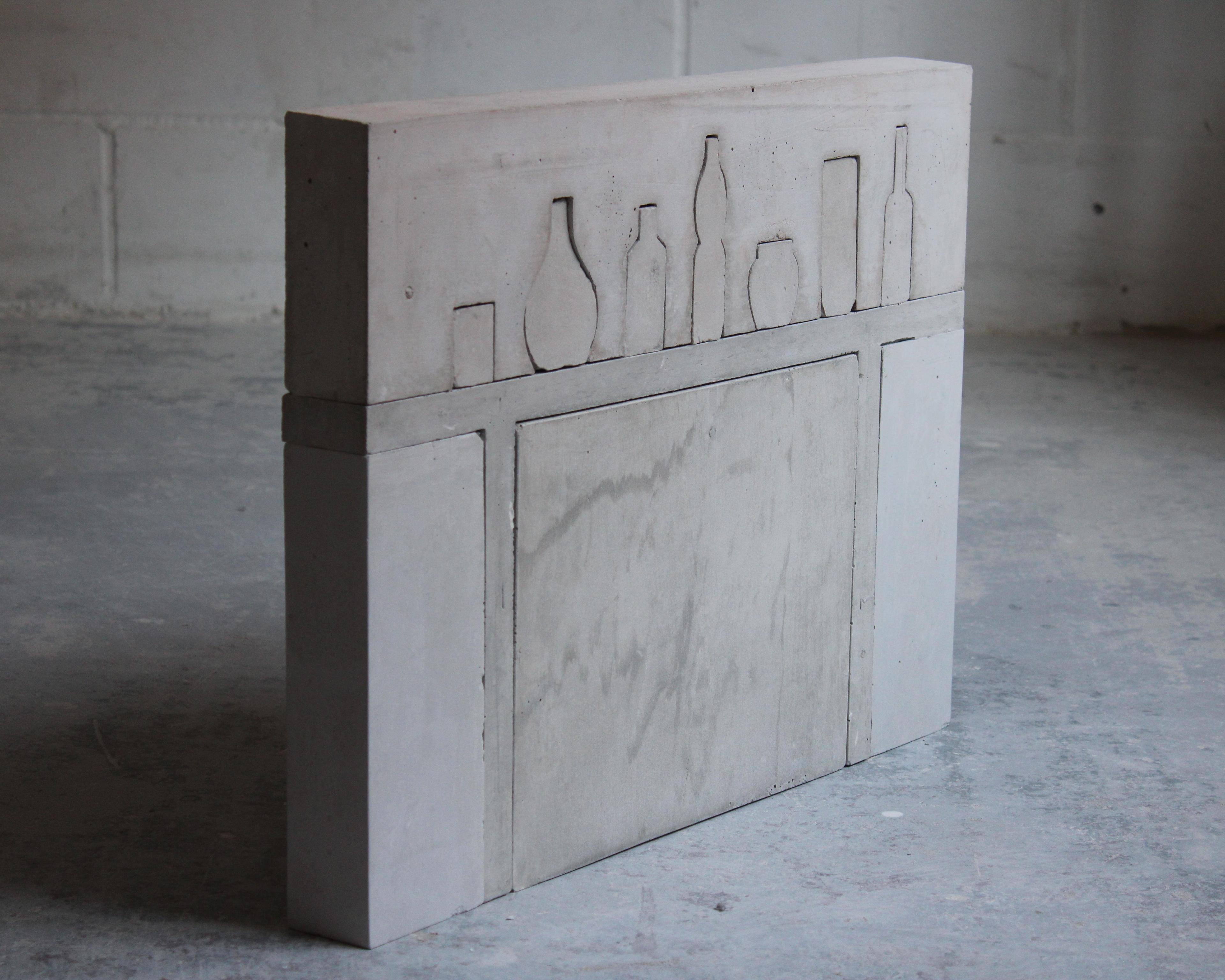 A 1:3 scale model of a stone wall composed of 12 pieces that fit together to form a single block.